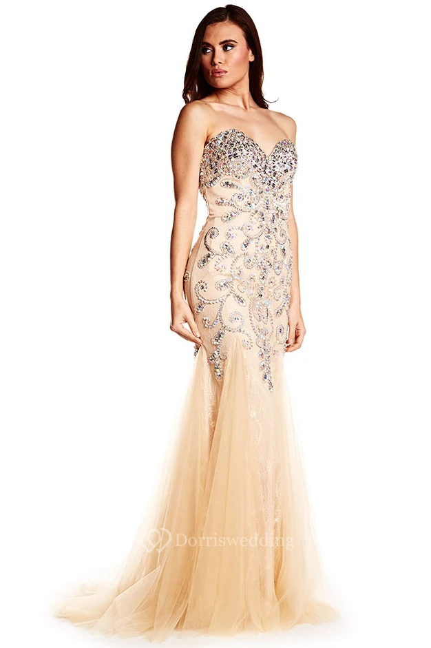 Mermaid Sleeveless Sweetheart Tulle Prom Dress With Brush Train