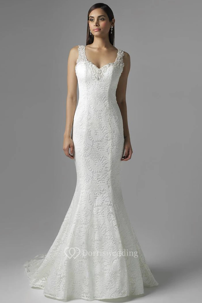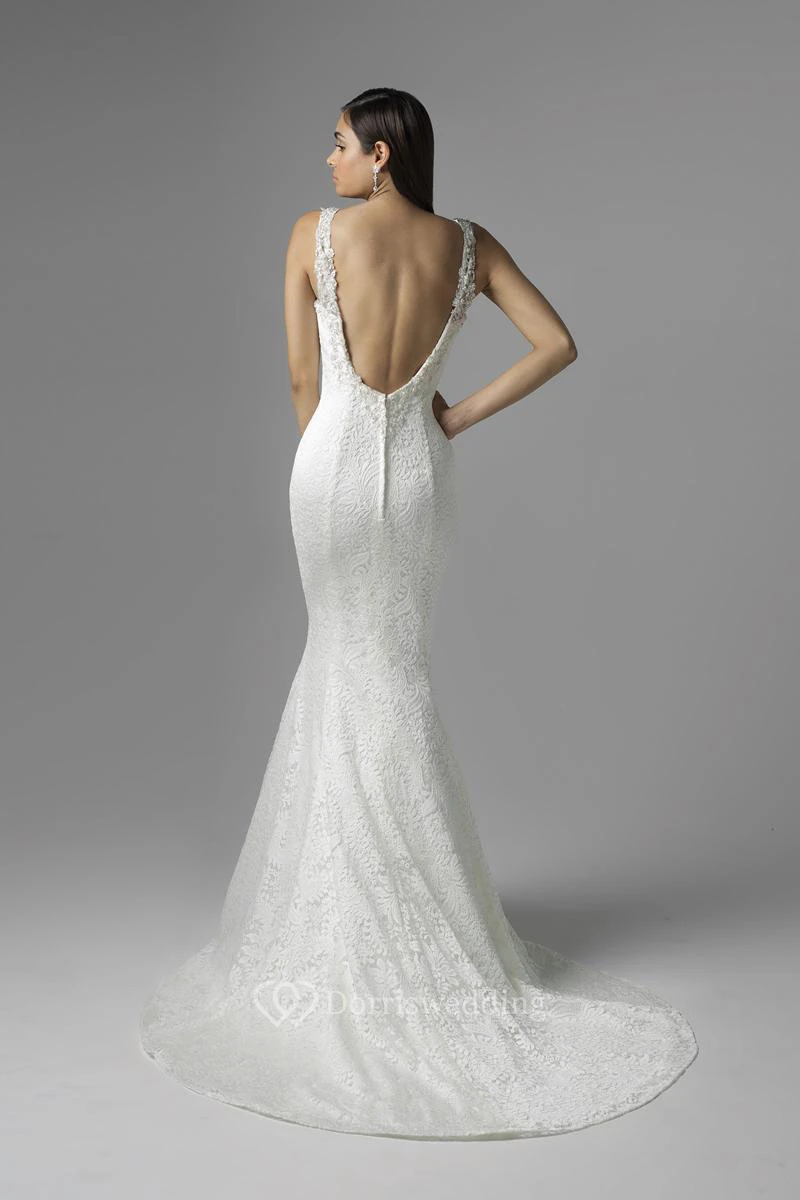 Mermaid Sleeveless V-Neck Lace Wedding Dress With Backless Design