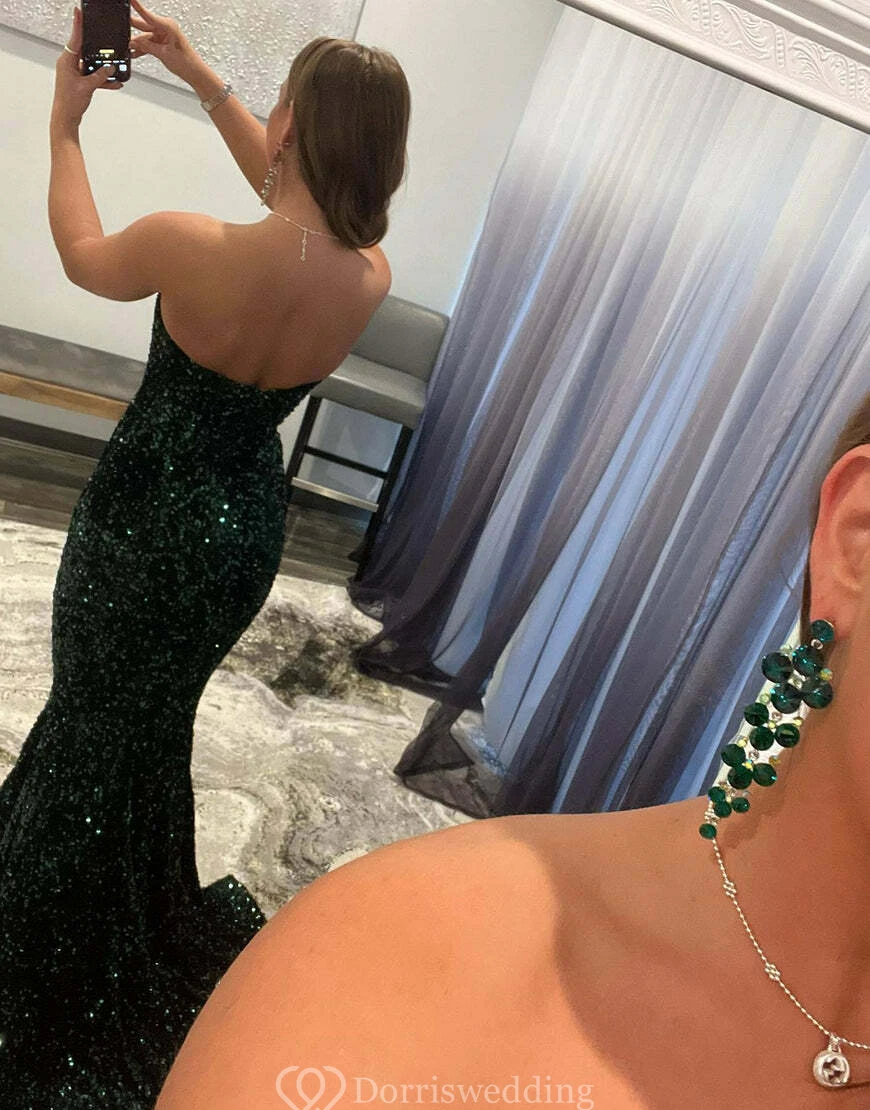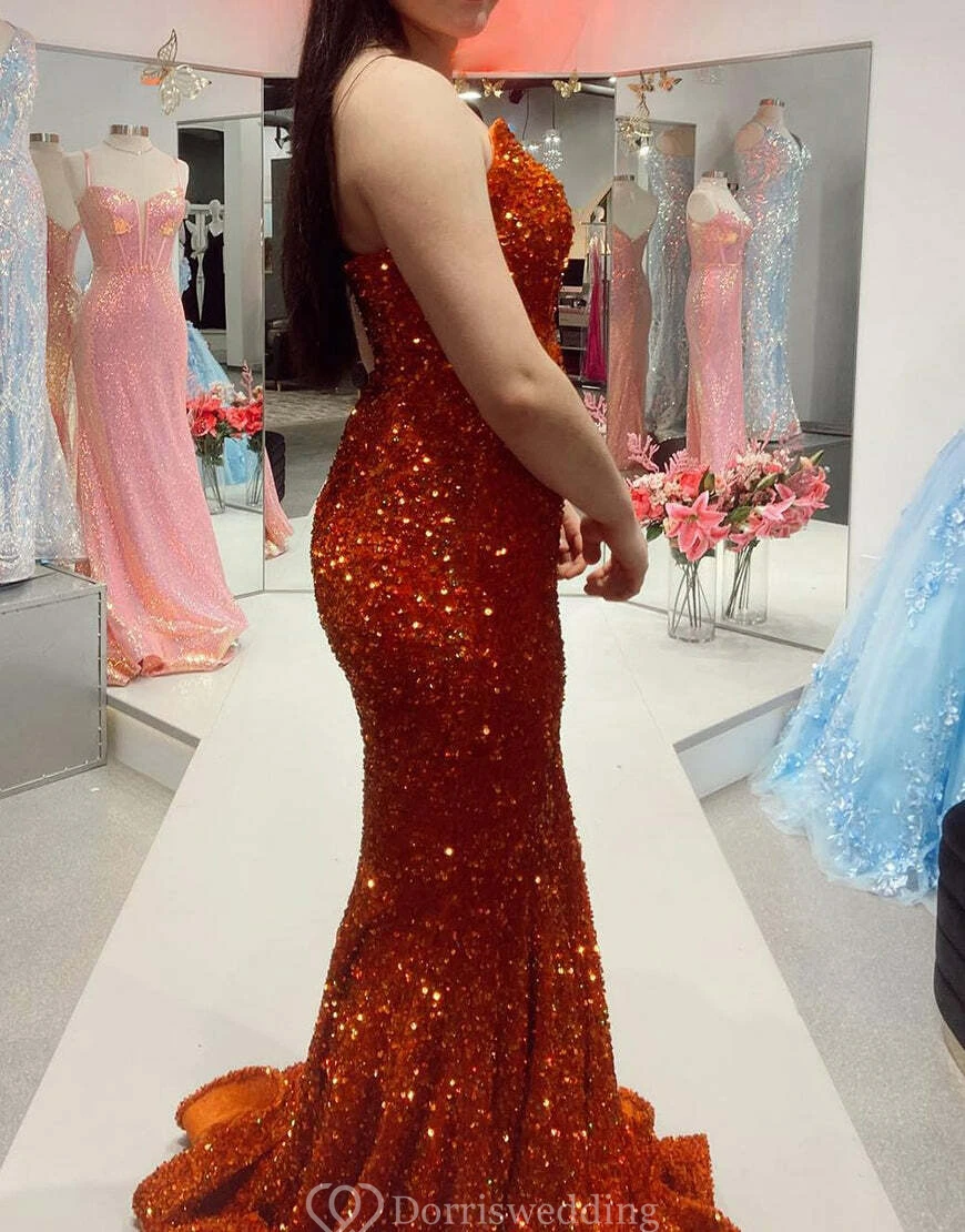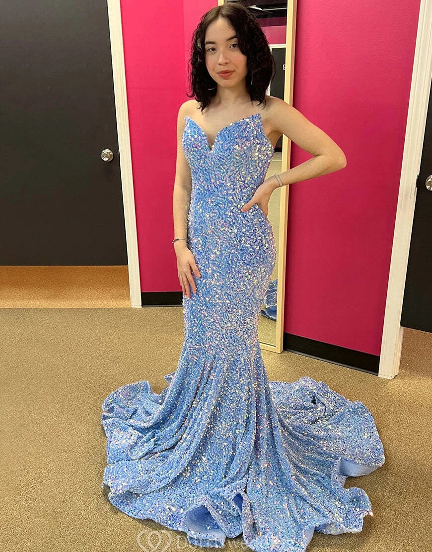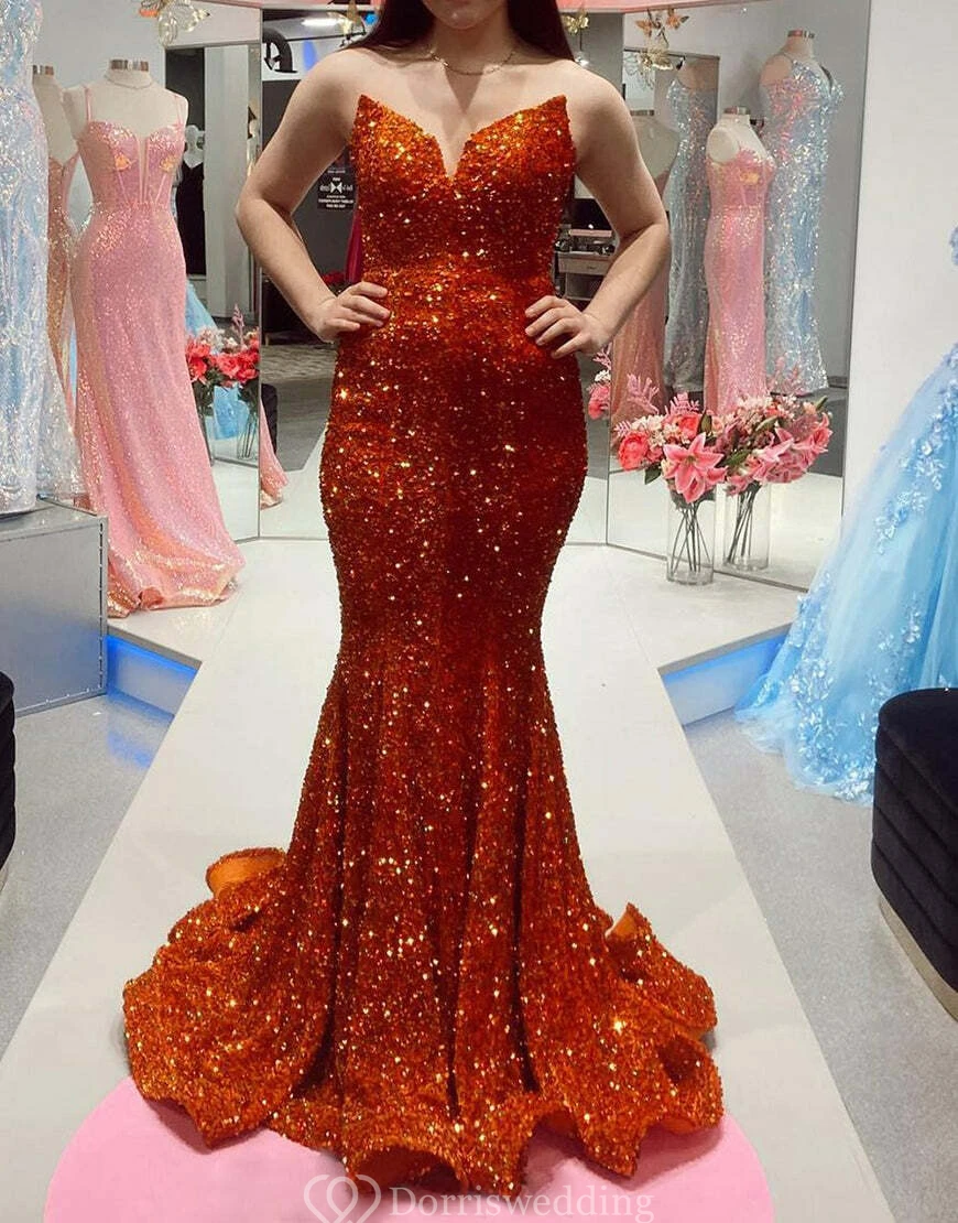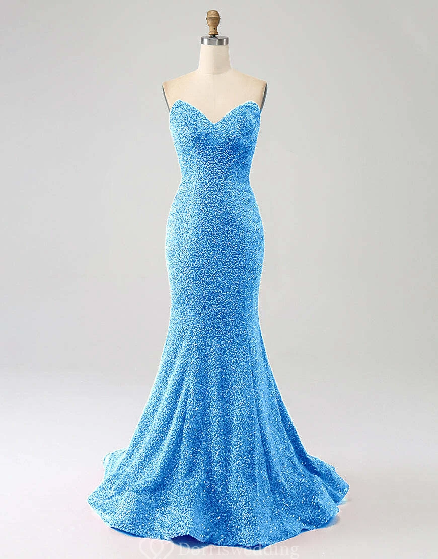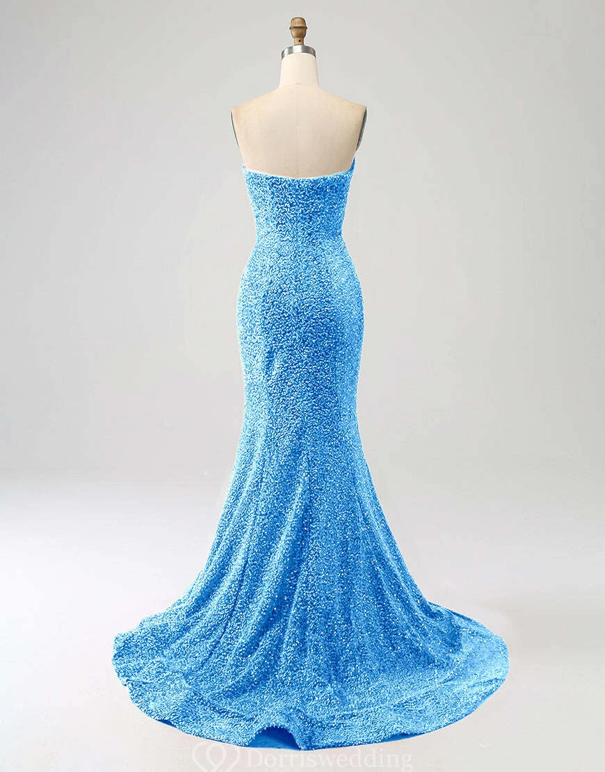 Mermaid Sparkly Sequin Dress with Beadings and Sweep Train