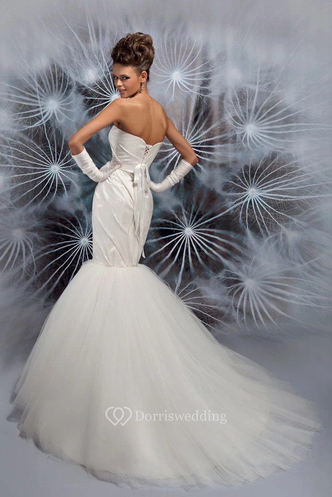 Mermaid Strapless Floor-Length Appliqued Sleeveless Lace&Satin Wedding Dress With Lace-Up Back And Chapel Train