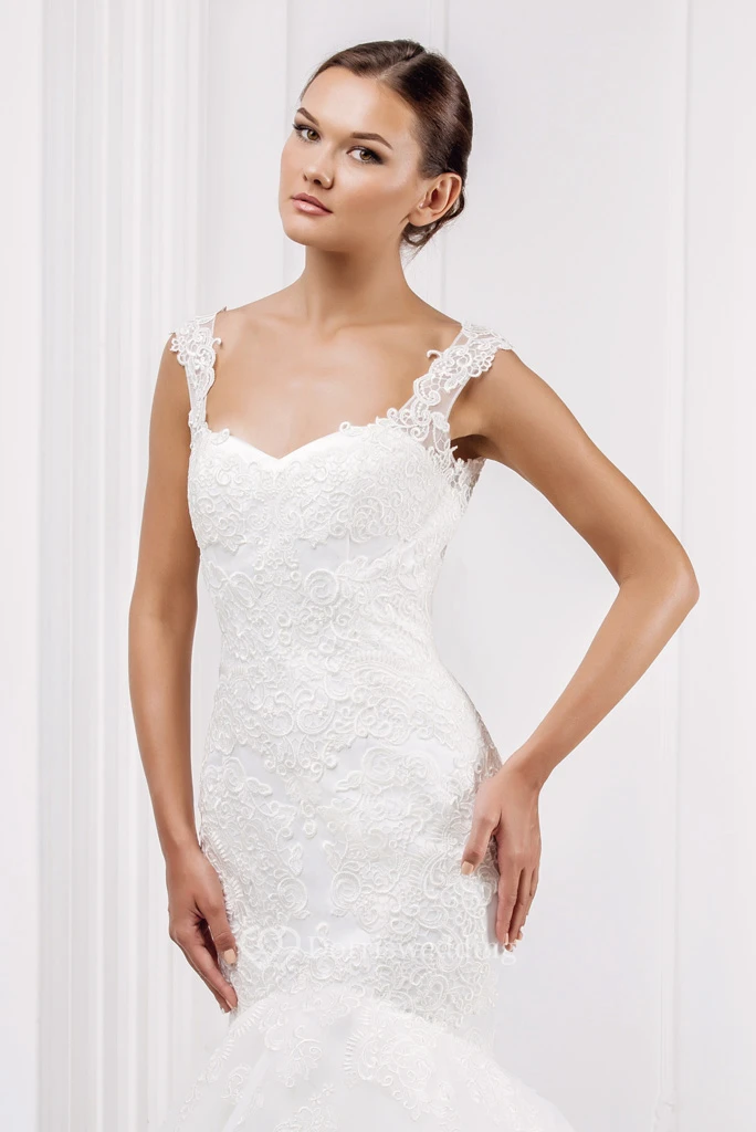Mermaid Strapless Floor-Length Appliqued Sleeveless Tulle & Lace Wedding Dress Styles With Illusion Back And Court Train
