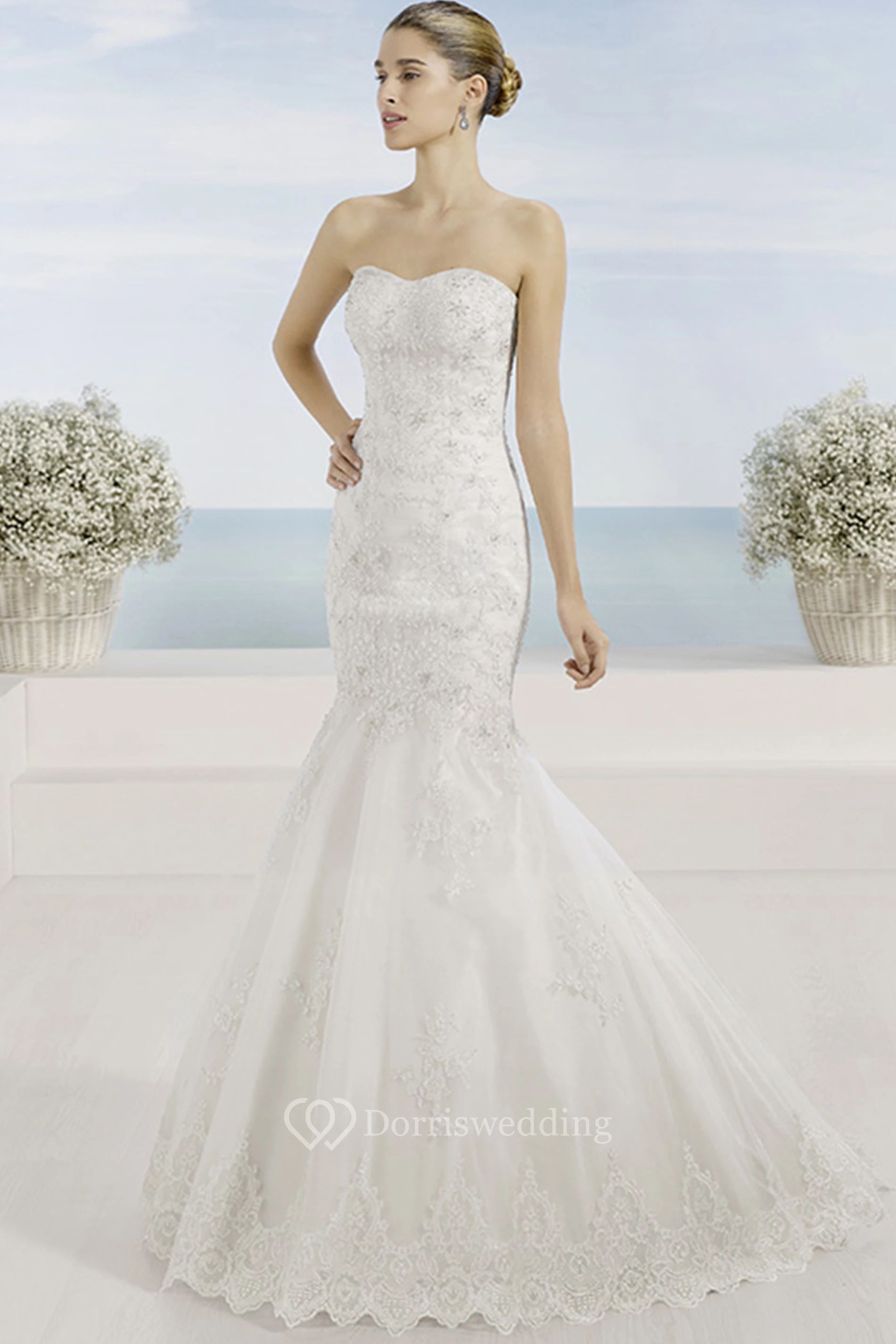 Mermaid Strapless Lace Wedding Dress With Illusion