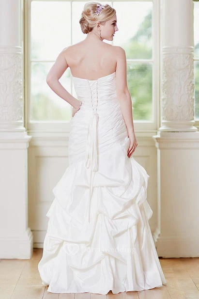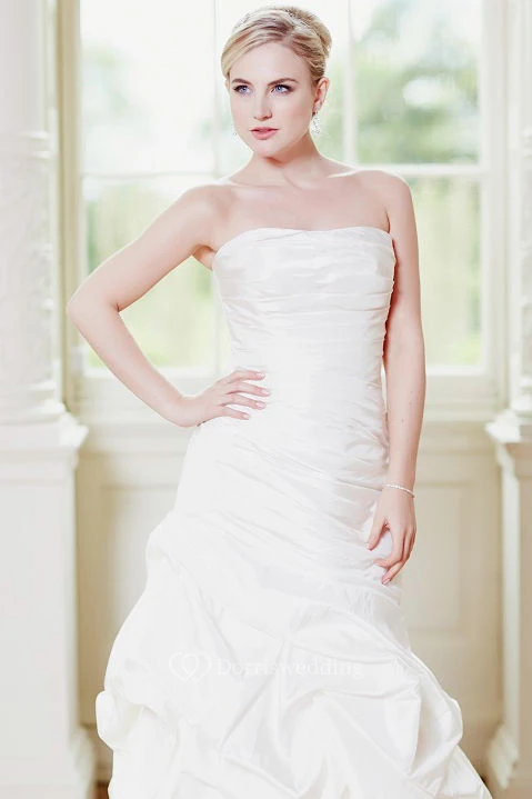 Mermaid Strapless Ruffled Taffeta Wedding Dress With Ruching And Lace Up