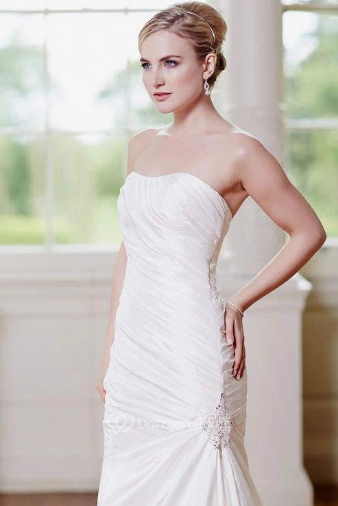 Mermaid Strapless Taffeta Wedding Dress With Side Draping And Lace Up