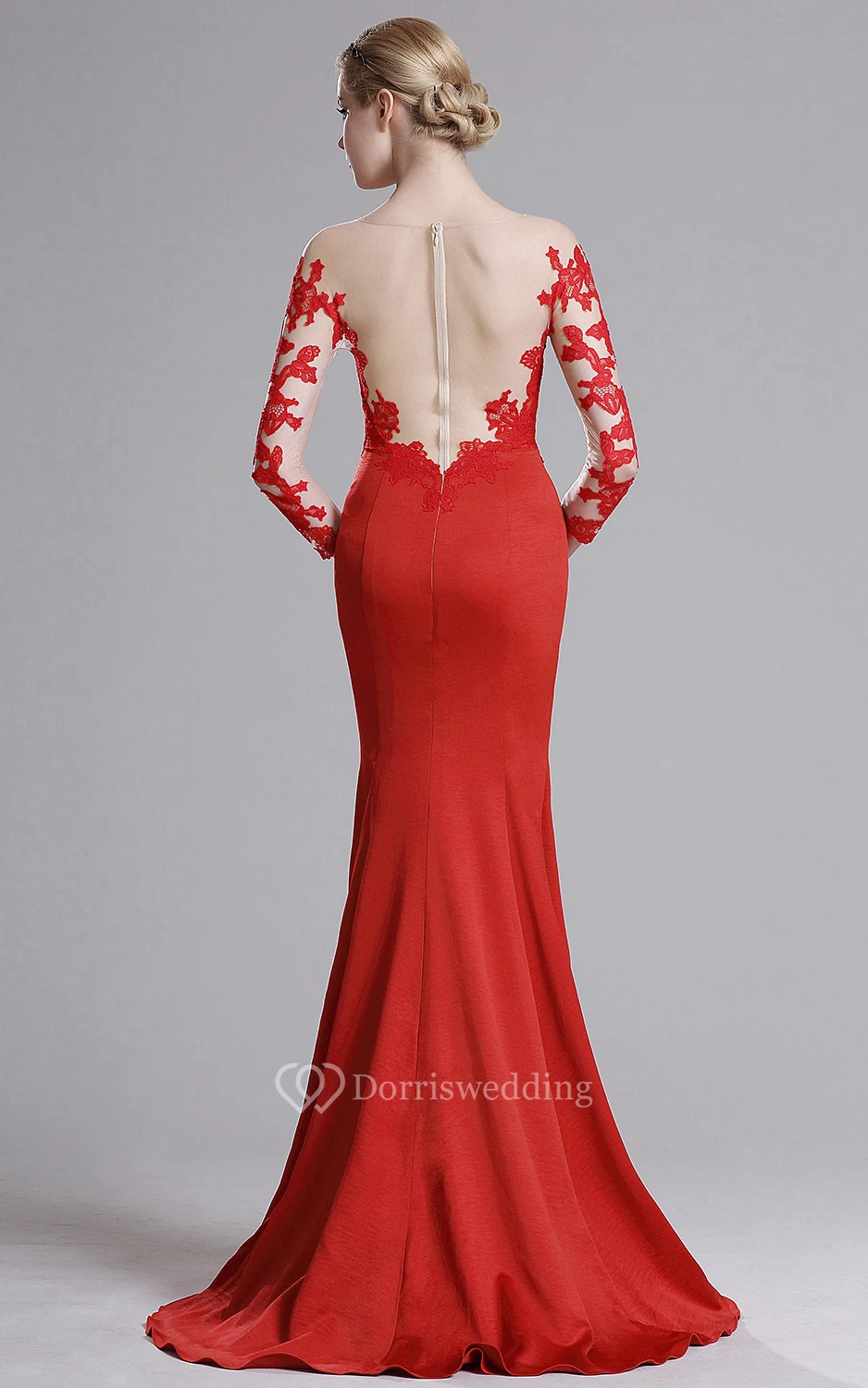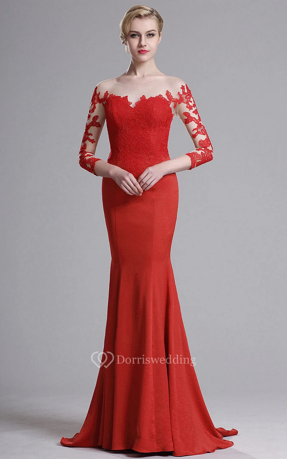 Mermaid Sweep Bateau 3 Jersey Appliques Lace Illusion Dress