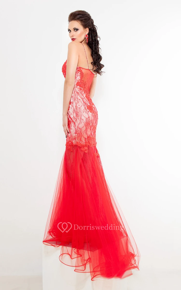 Mermaid Sweep Sweetheart Sleeveless Tulle Appliques Pleats Illusion Dress