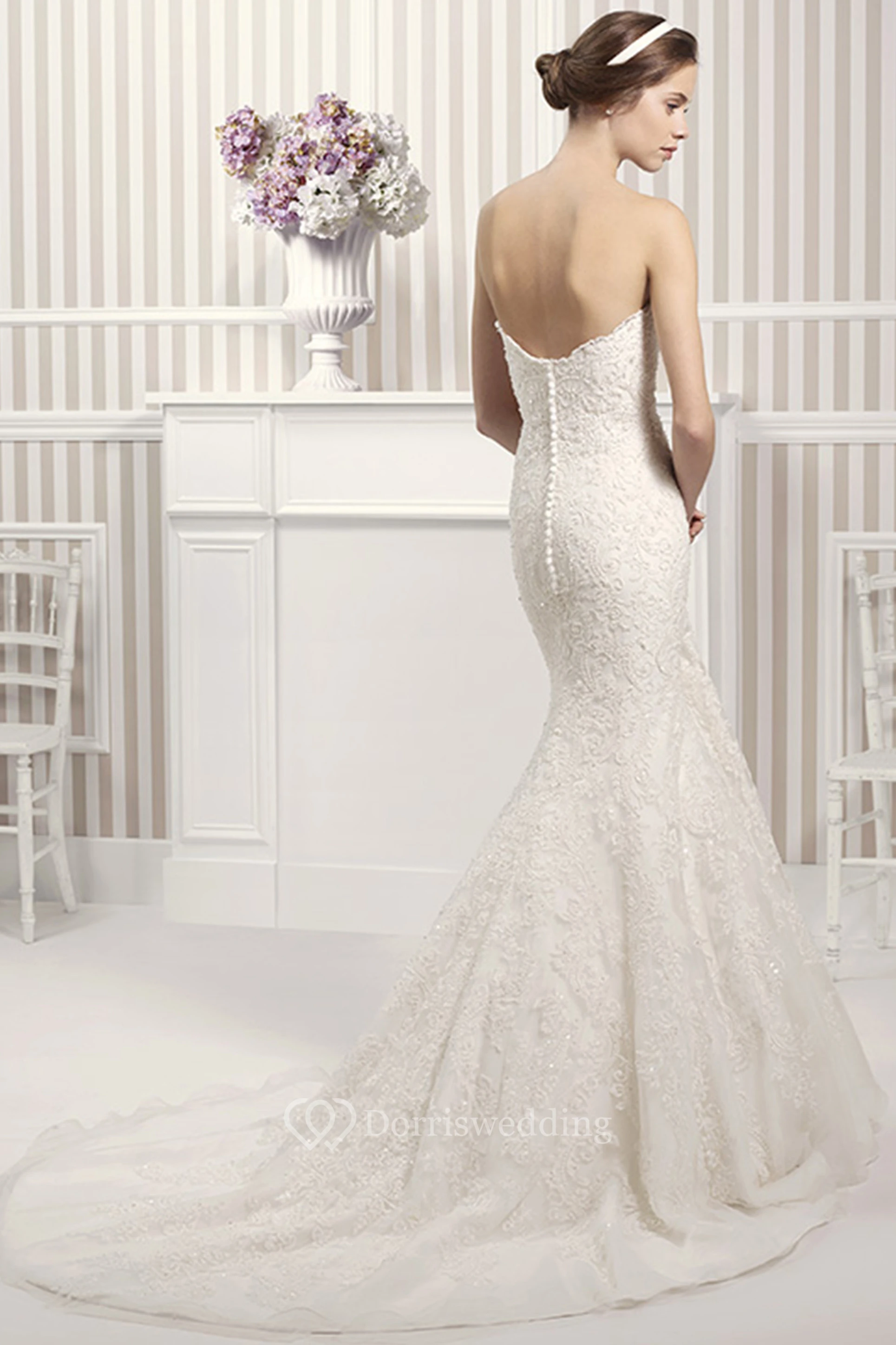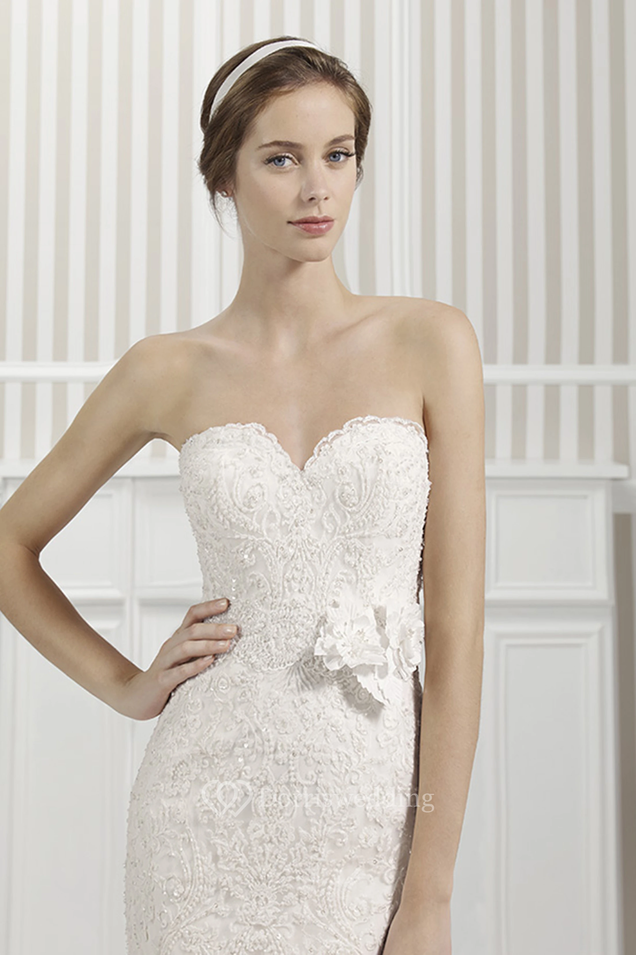 Mermaid Sweetheart Appliqued Lace Wedding Dress With Flower