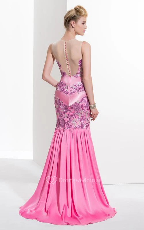 Mermaid Sweetheart Appliques Ruched Sequins Brush Train Prom Dress