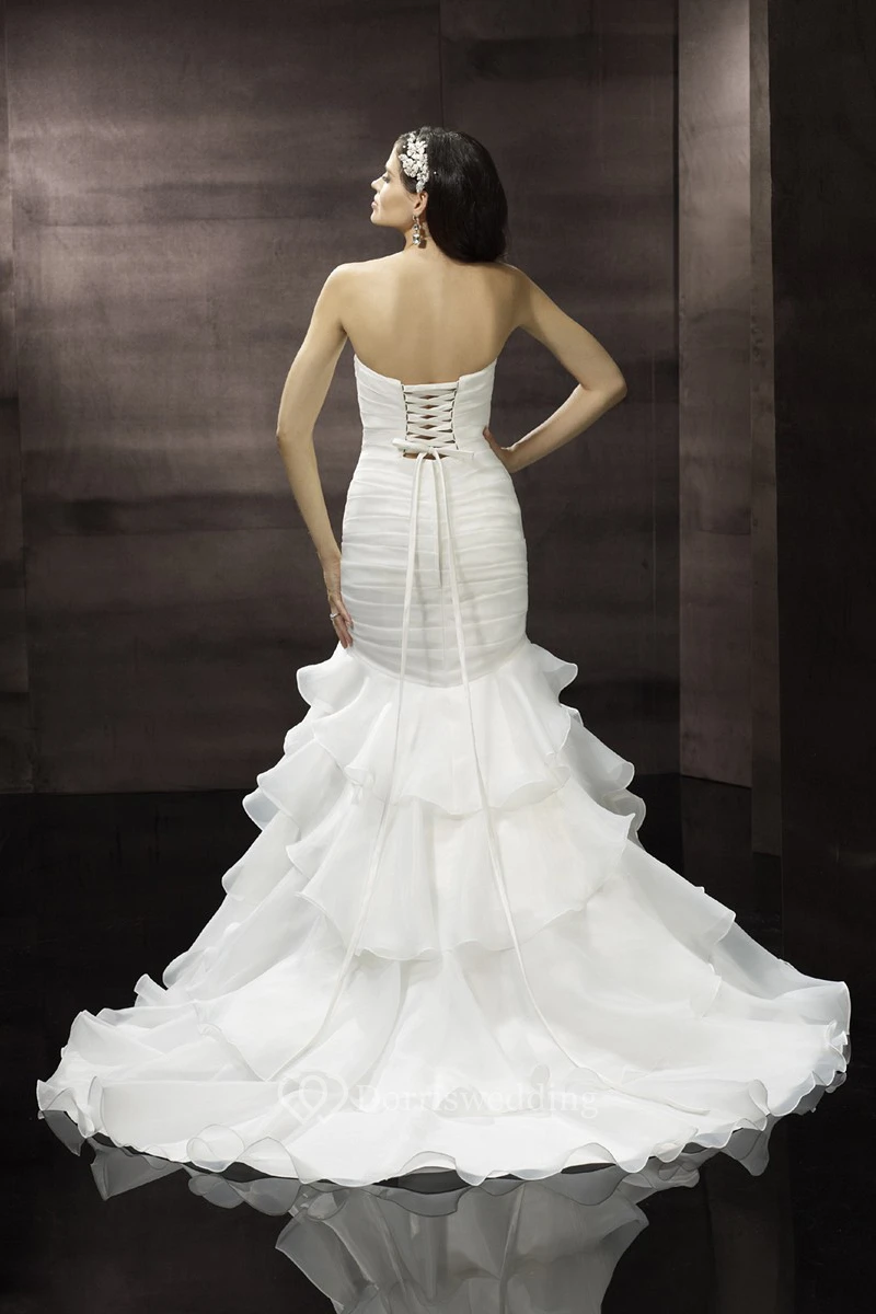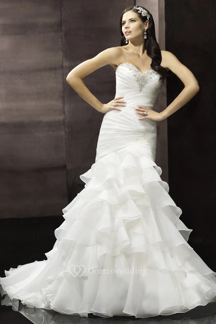 Mermaid Sweetheart Beaded Organza Wedding Dress With Ruching And Tiers