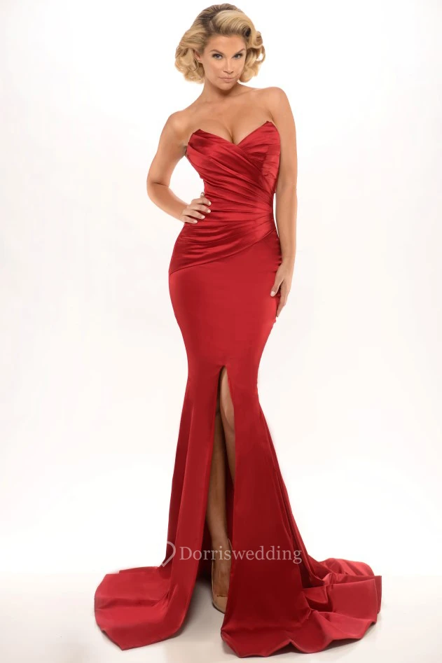 Mermaid Sweetheart Floor-Length Split-Front Sleeveless Satin Prom Dress With Zipper Back And Ruching