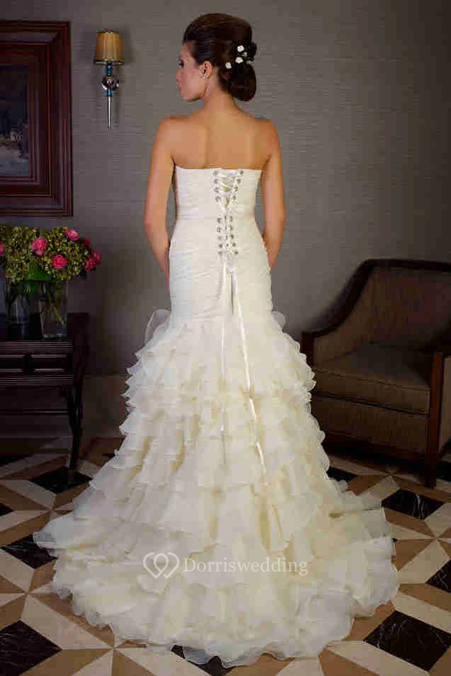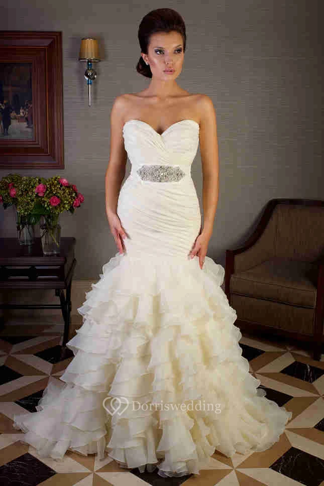 Mermaid Sweetheart Jeweled Organza Wedding Dress With Criss Cross And Tiers