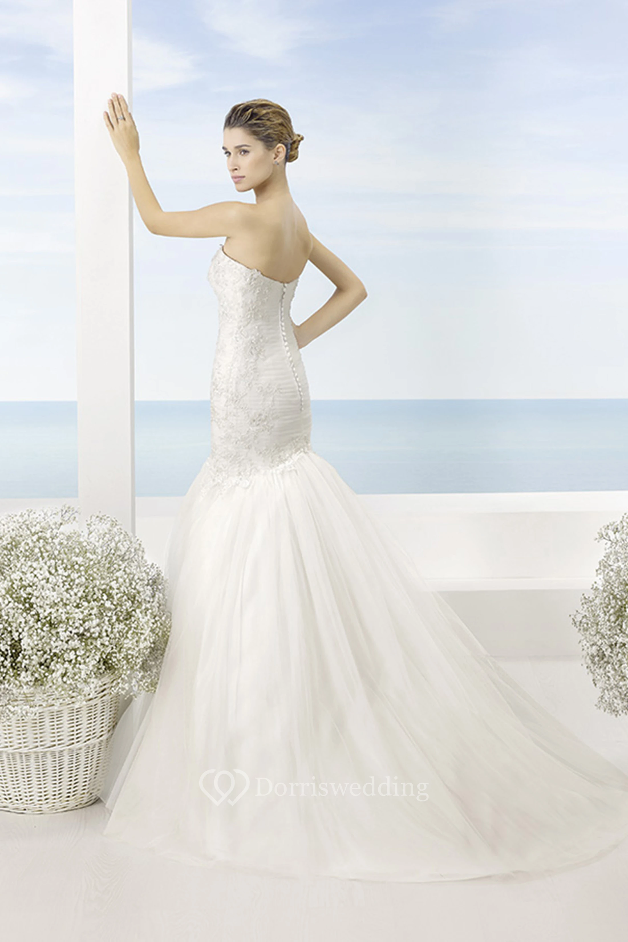 Mermaid Sweetheart Ruched Tulle Wedding Dress With Sweep Train