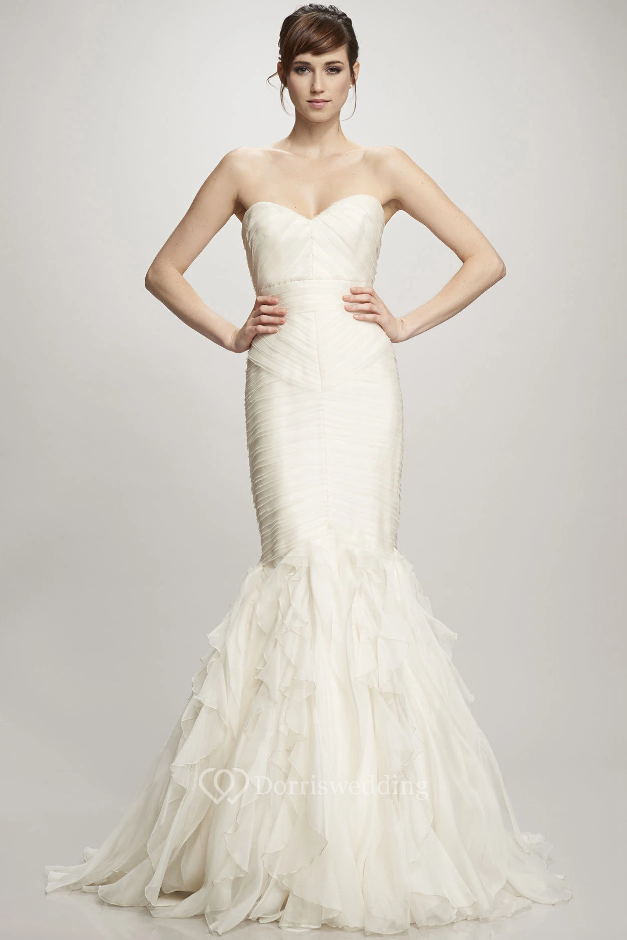 Mermaid Sweetheart Ruffled Organza Wedding Dress With Ruching And Zipper