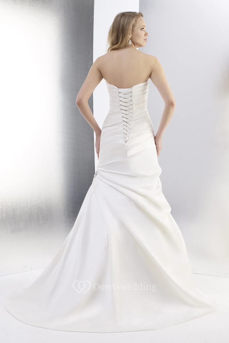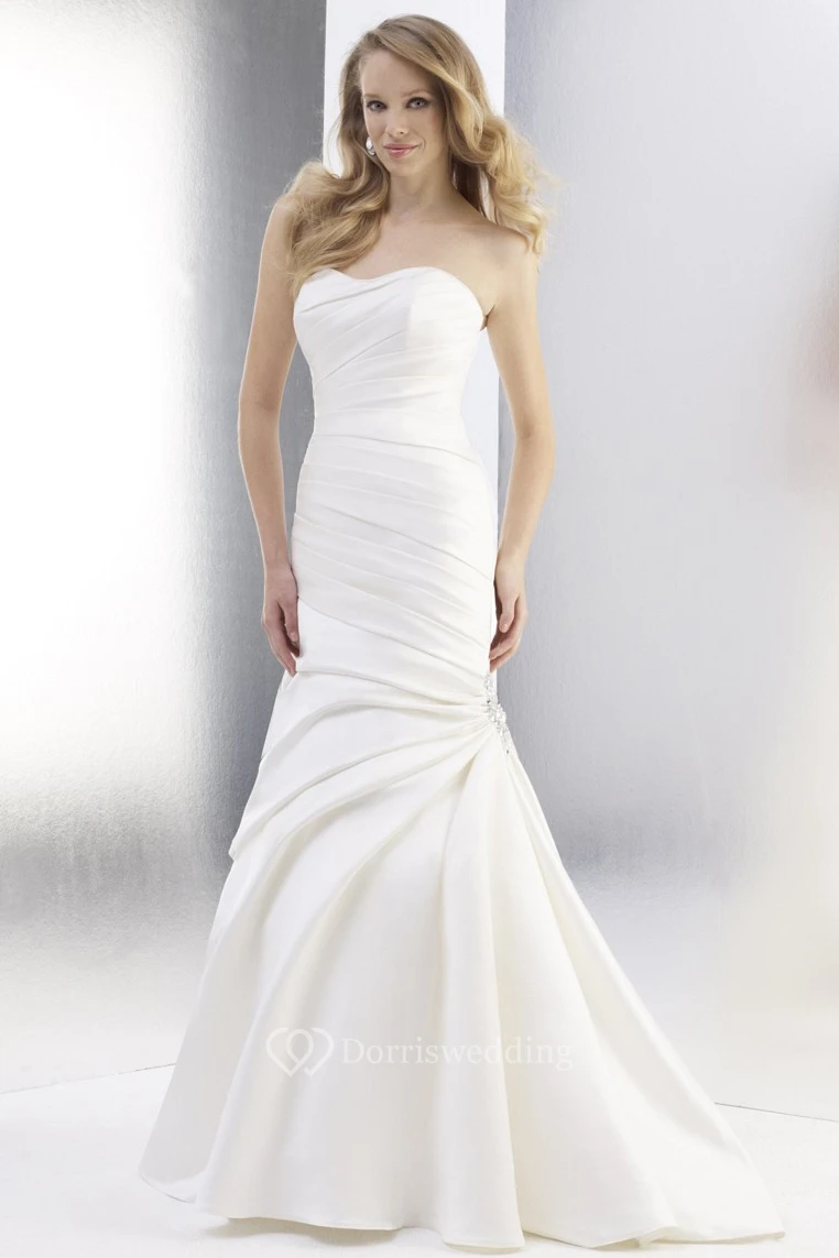 Mermaid Sweetheart Satin Wedding Dress With Ruching And Side Draping