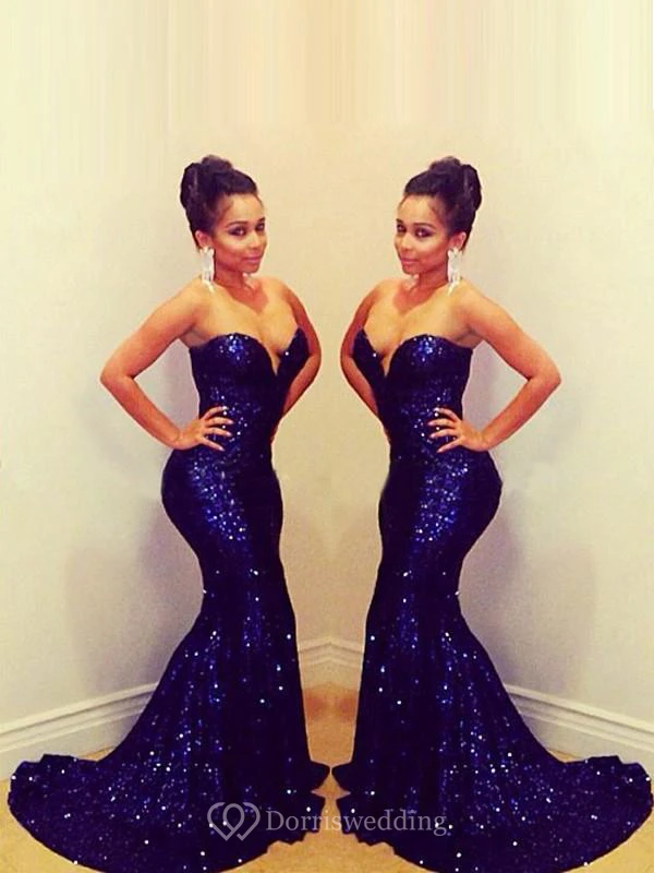 Mermaid Sweetheart Sleeveless Sequins Sweep Train Dresses