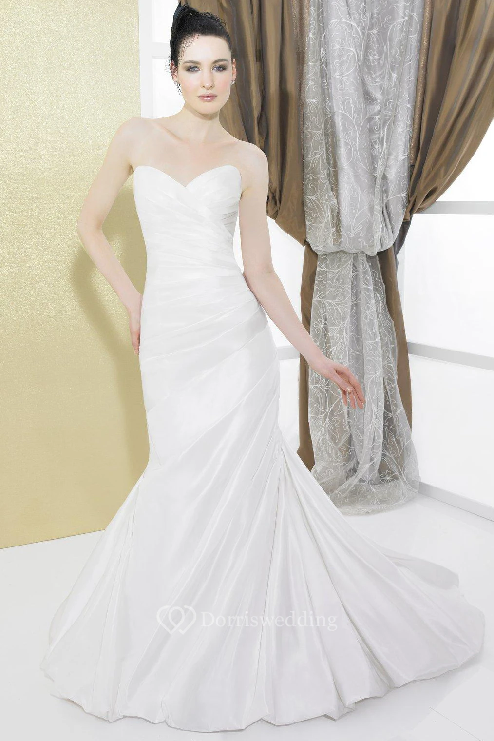 Mermaid Sweetheart Taffeta Wedding Dress With Ruching And Lace Up