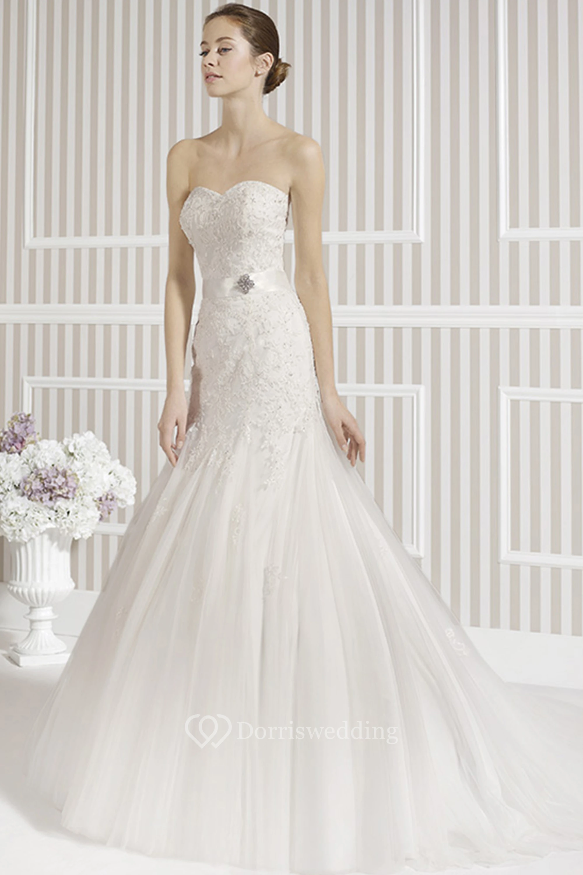 Mermaid Sweetheart Tulle Wedding Dress With Beading And Flower