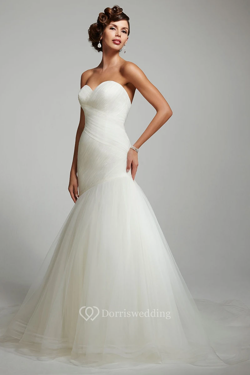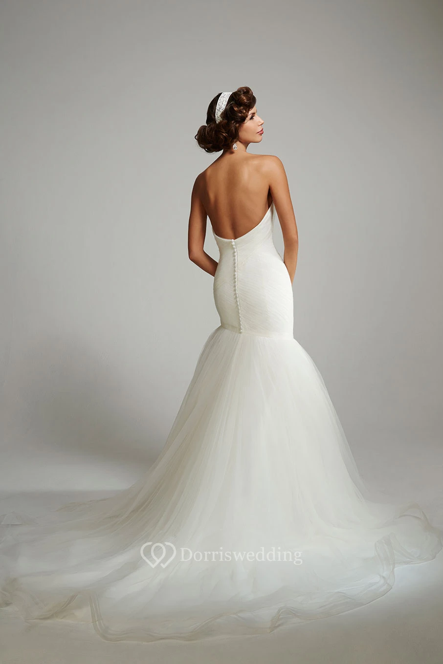 Mermaid Sweetheart Tulle Wedding Dress With Criss Cross And Backless Design