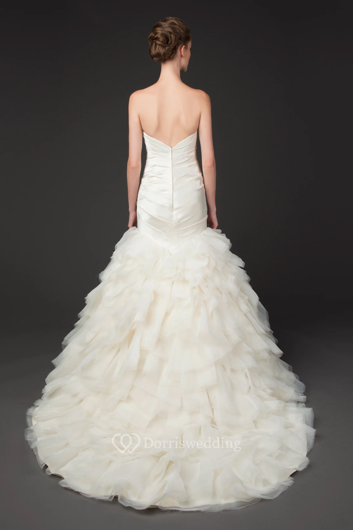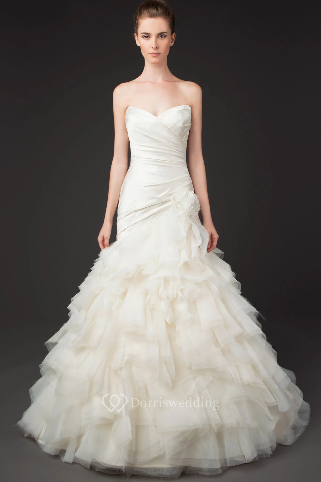 Mermaid Sweetheart Tulle Wedding Dress With Criss Cross And Cascading Ruffles