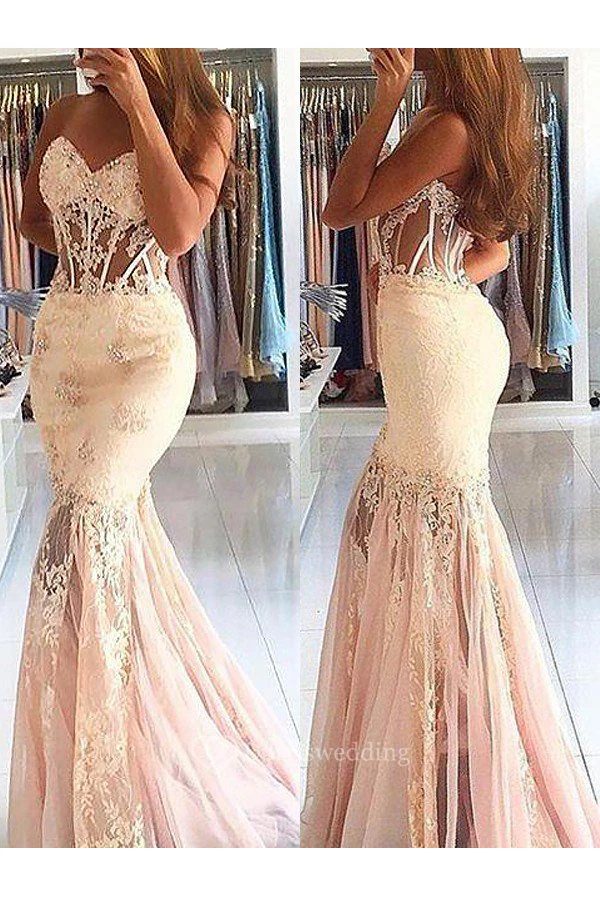 Mermaid Trumpet Lace Tulle Sweetheart Sleeveless Zipper Dress