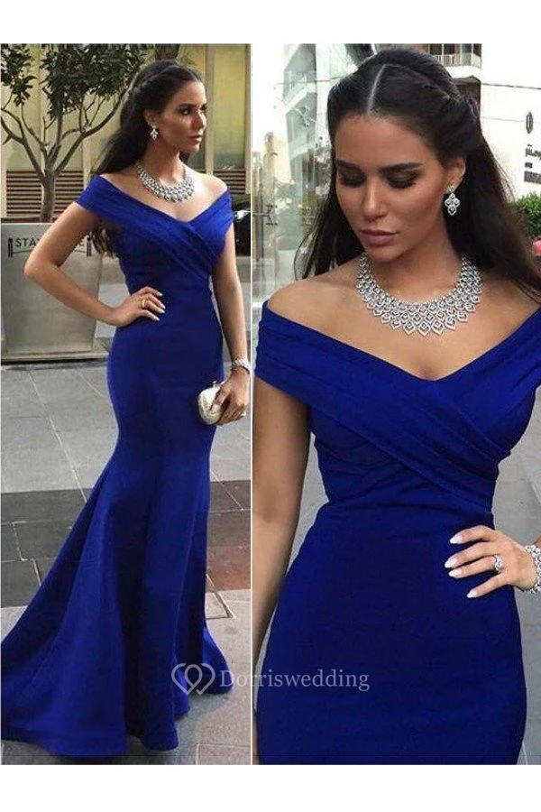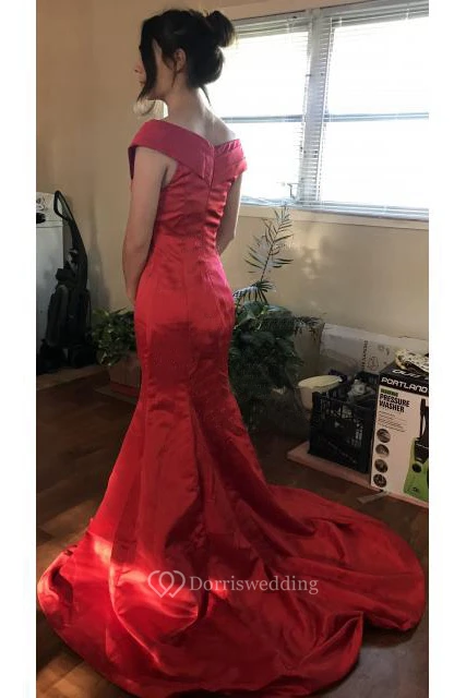 Mermaid Trumpet Satin Off-the-shoulder Short Sleeve Zipper Dress