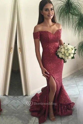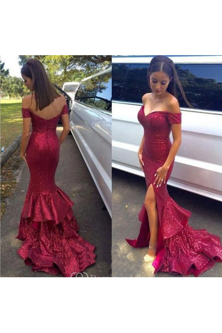 Mermaid Trumpet Sequins Off-the-shoulder Short Sleeve Zipper Dress