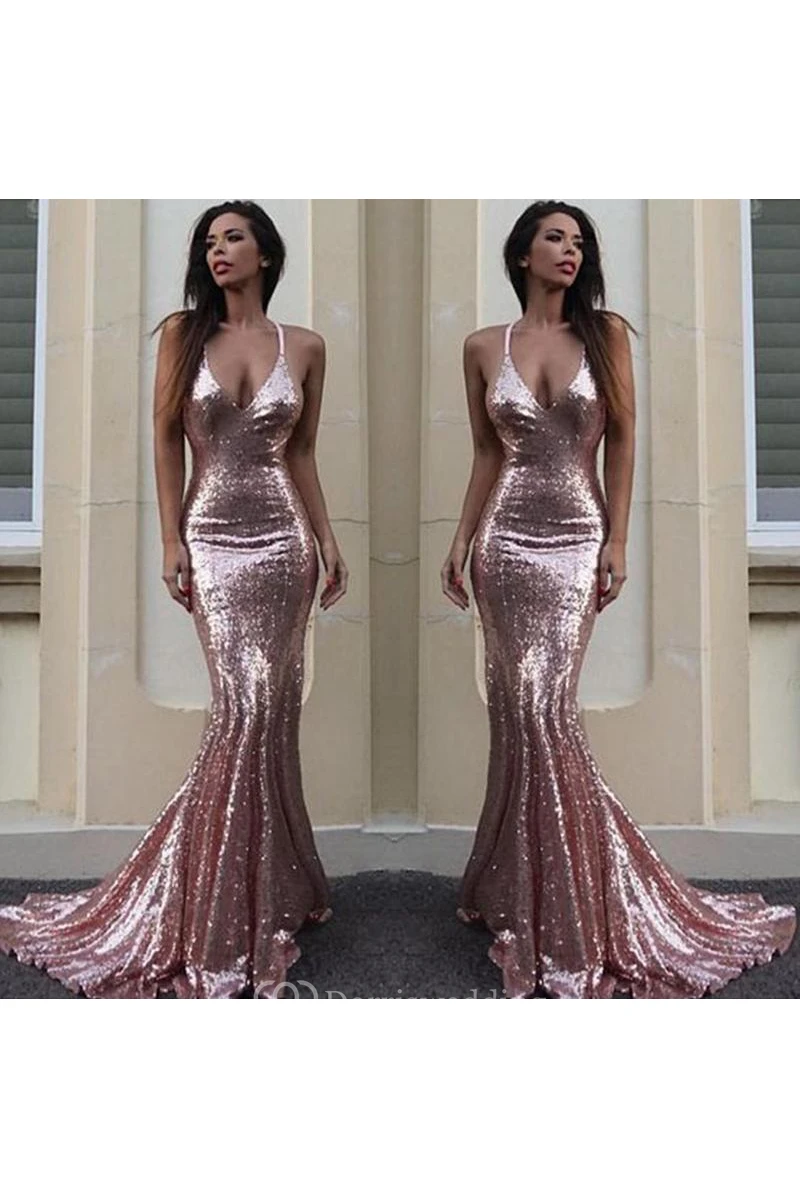 Mermaid Trumpet Sequins Spaghetti Sleeveless Open Back Straps Dress