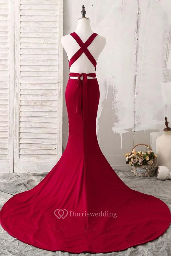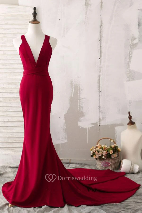 Mermaid Trumpet Sheath Satin V-neck Sleeveless Straps Dress