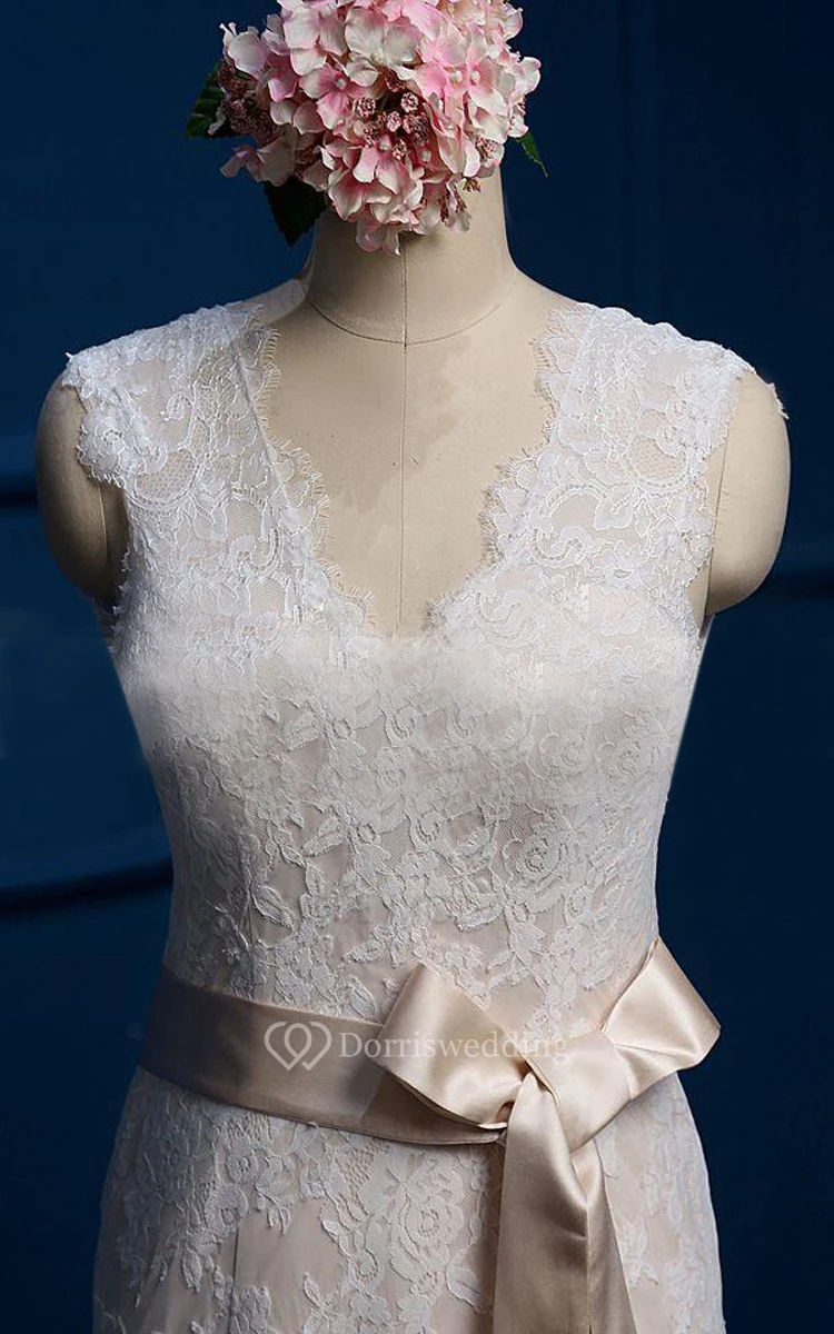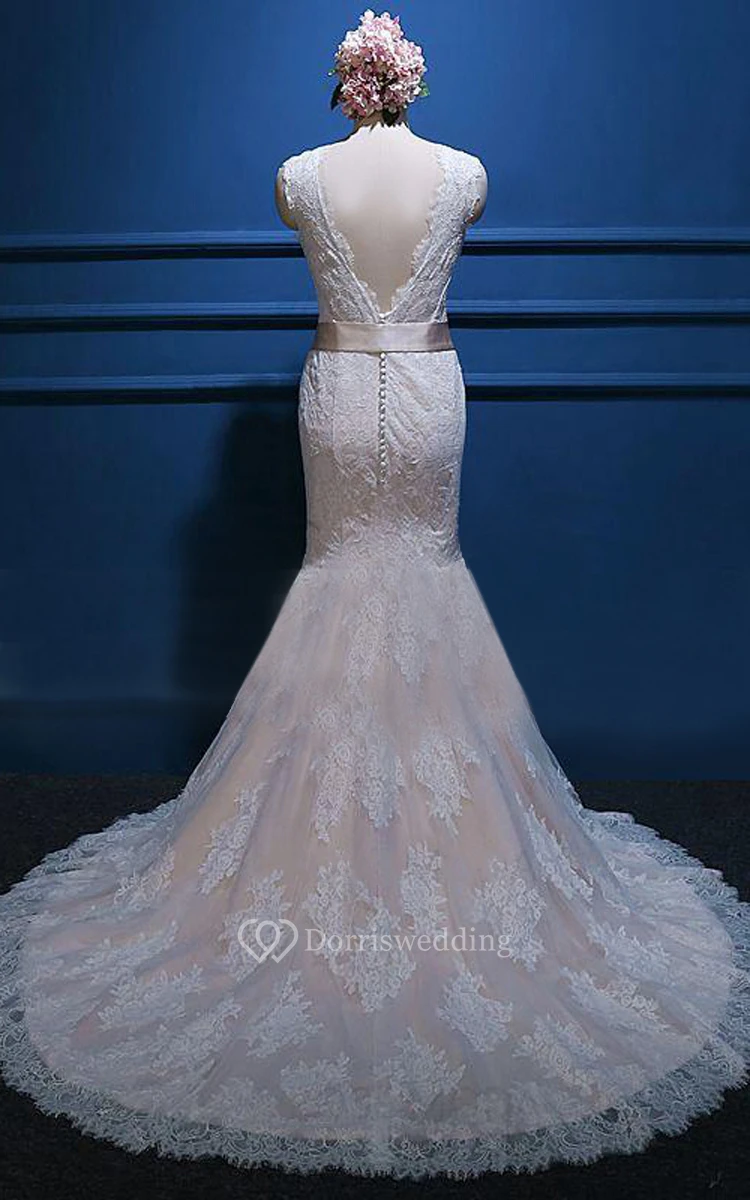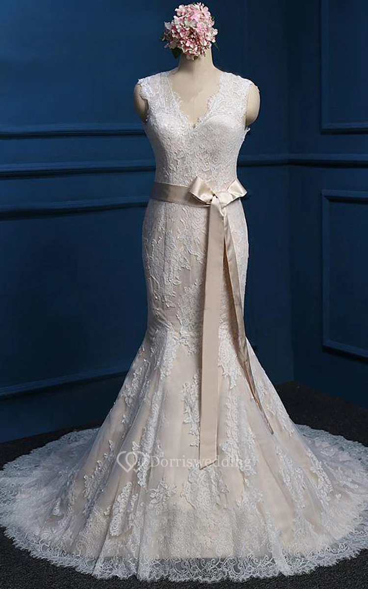 Mermaid V-Neck Sleeveless Cap Sash Dress
