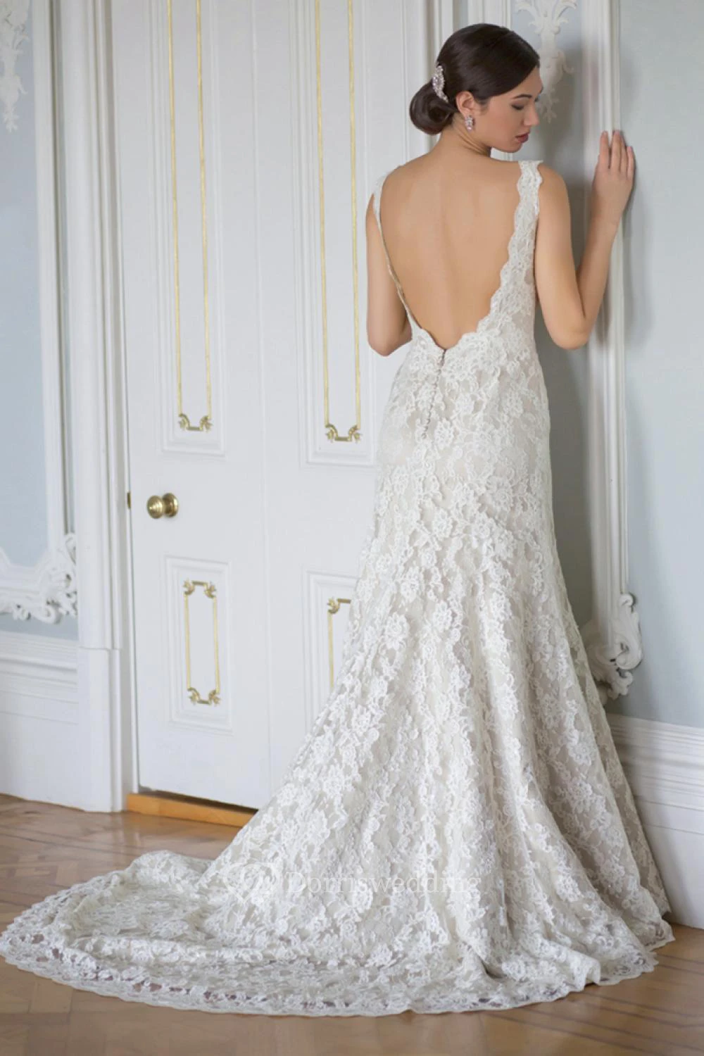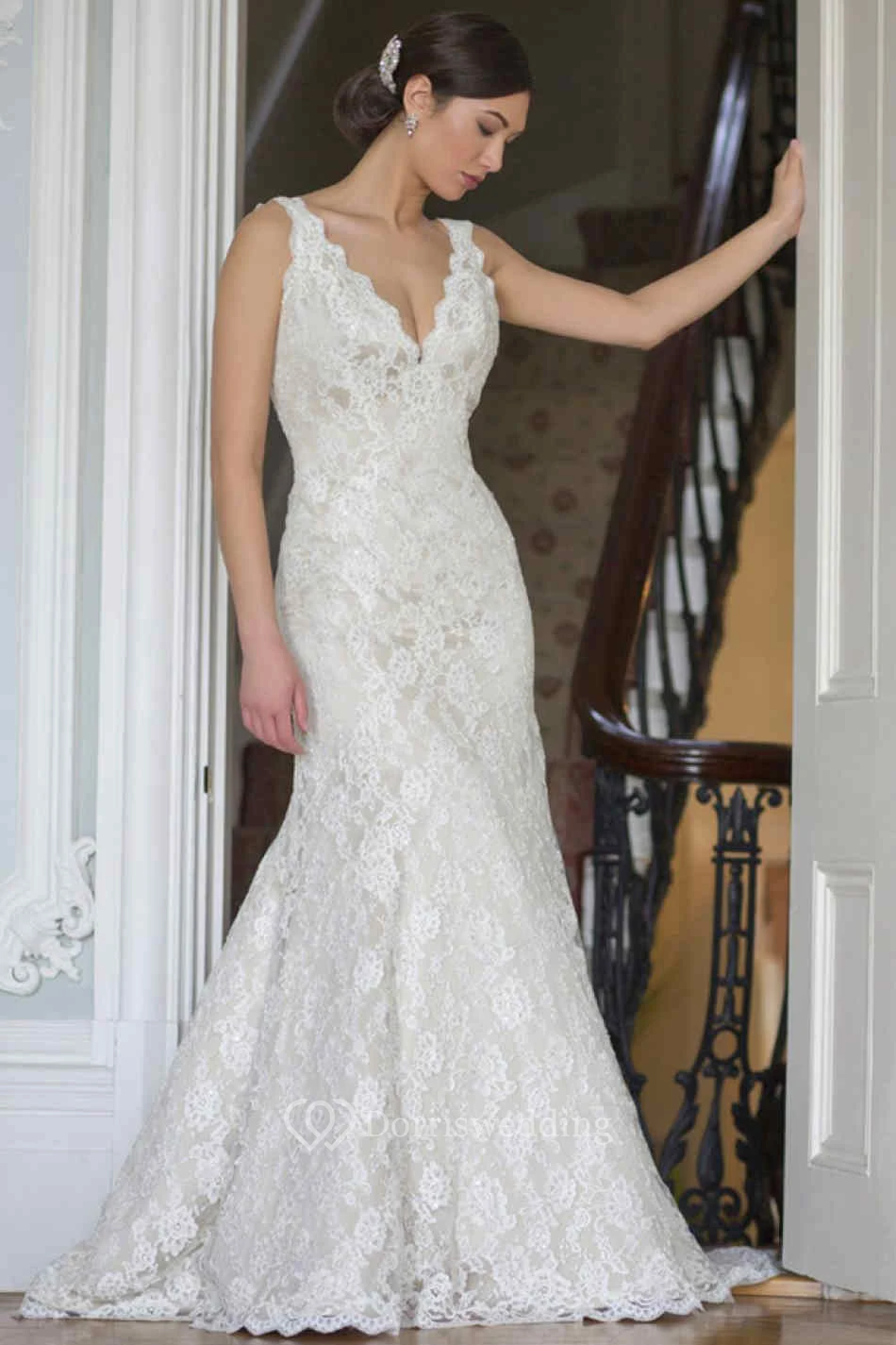 Mermaid V-Neck Sleeveless Lace Wedding Dress With Backless Design