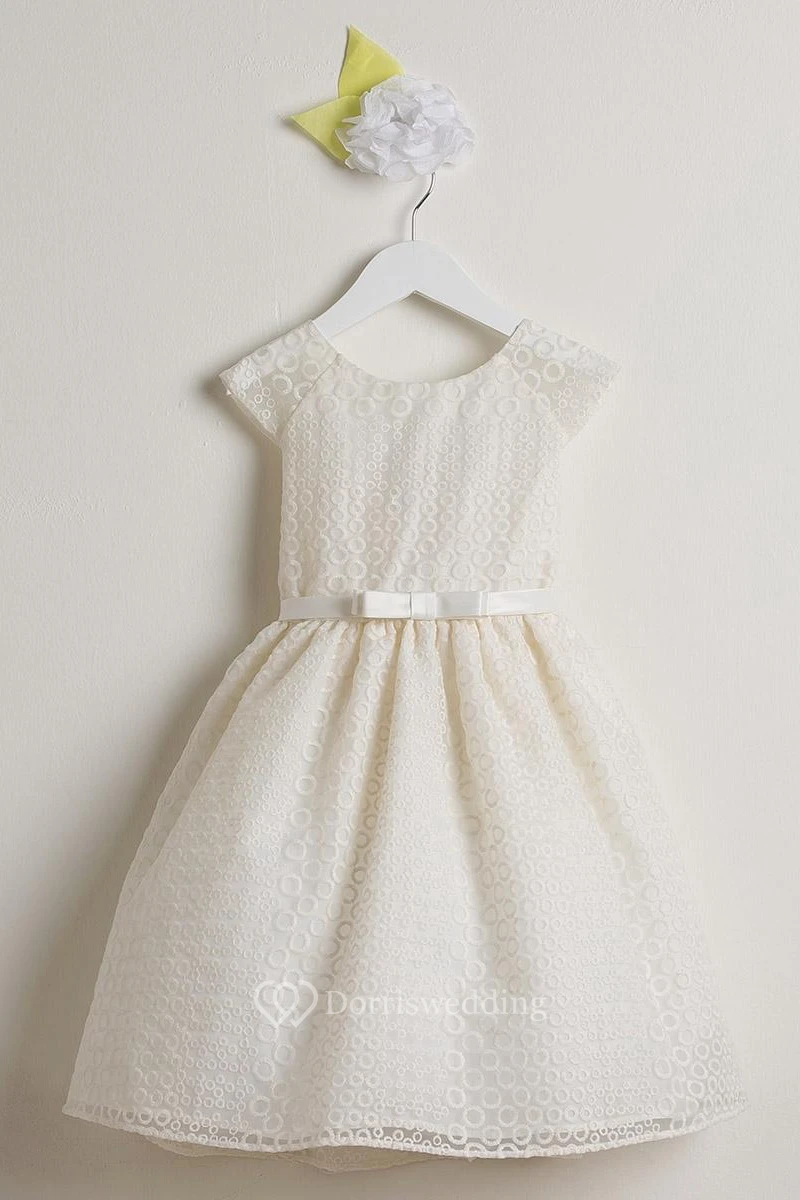 Midi Cap-Sleeve Bowed Organza&Satin Flower Girl Dress With Embroidery