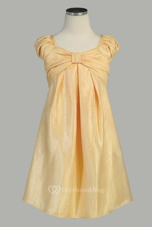 Midi Cap-Sleeve Ruched Satin Flower Girl Dress