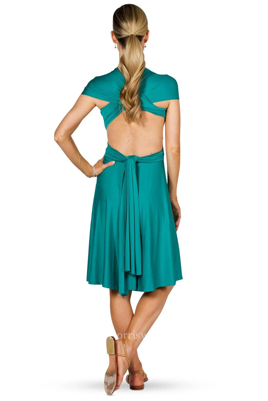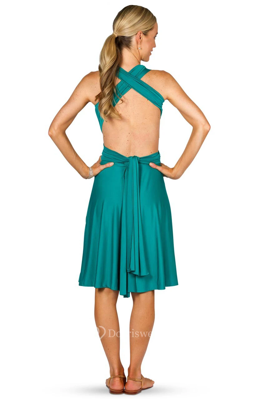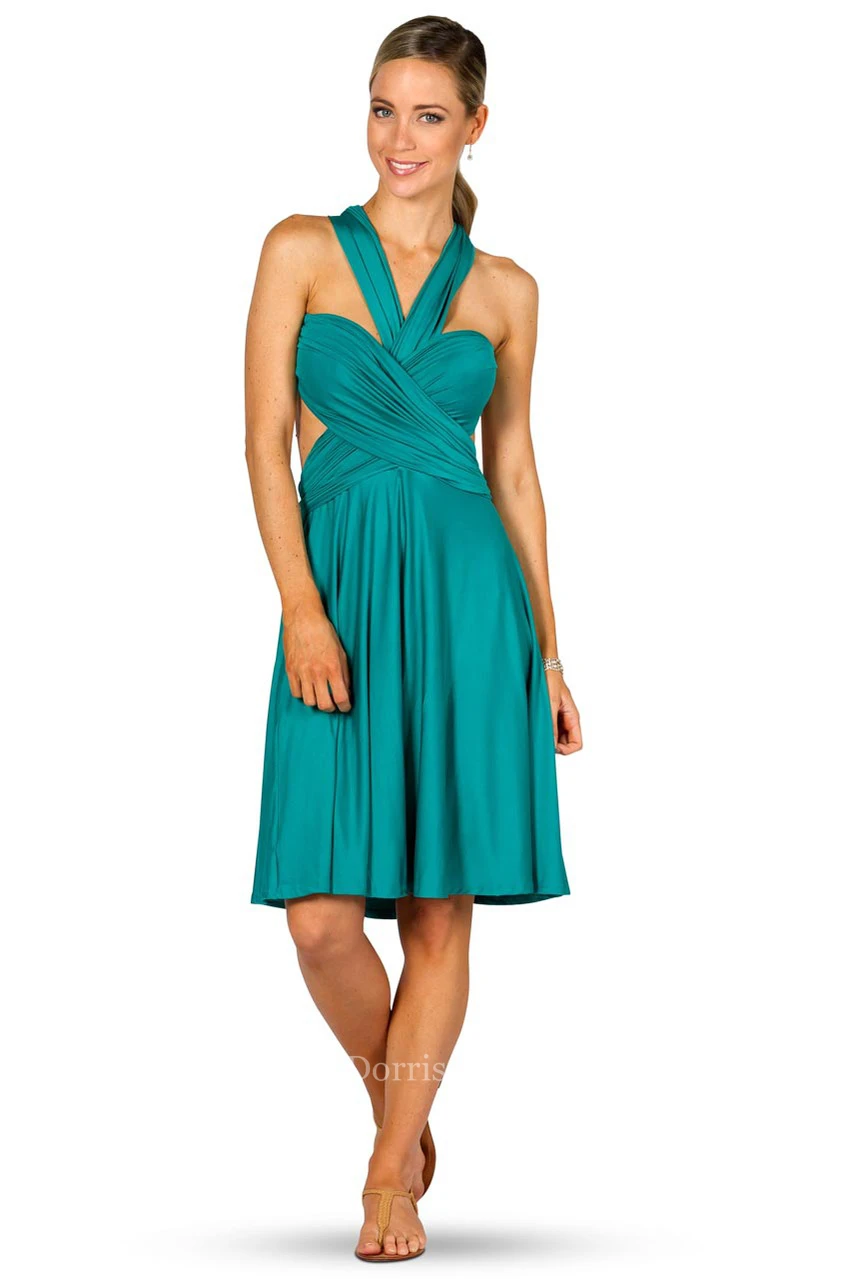 Midi Halter Ruched Jersey Convertible Bridesmaid Dress With Straps