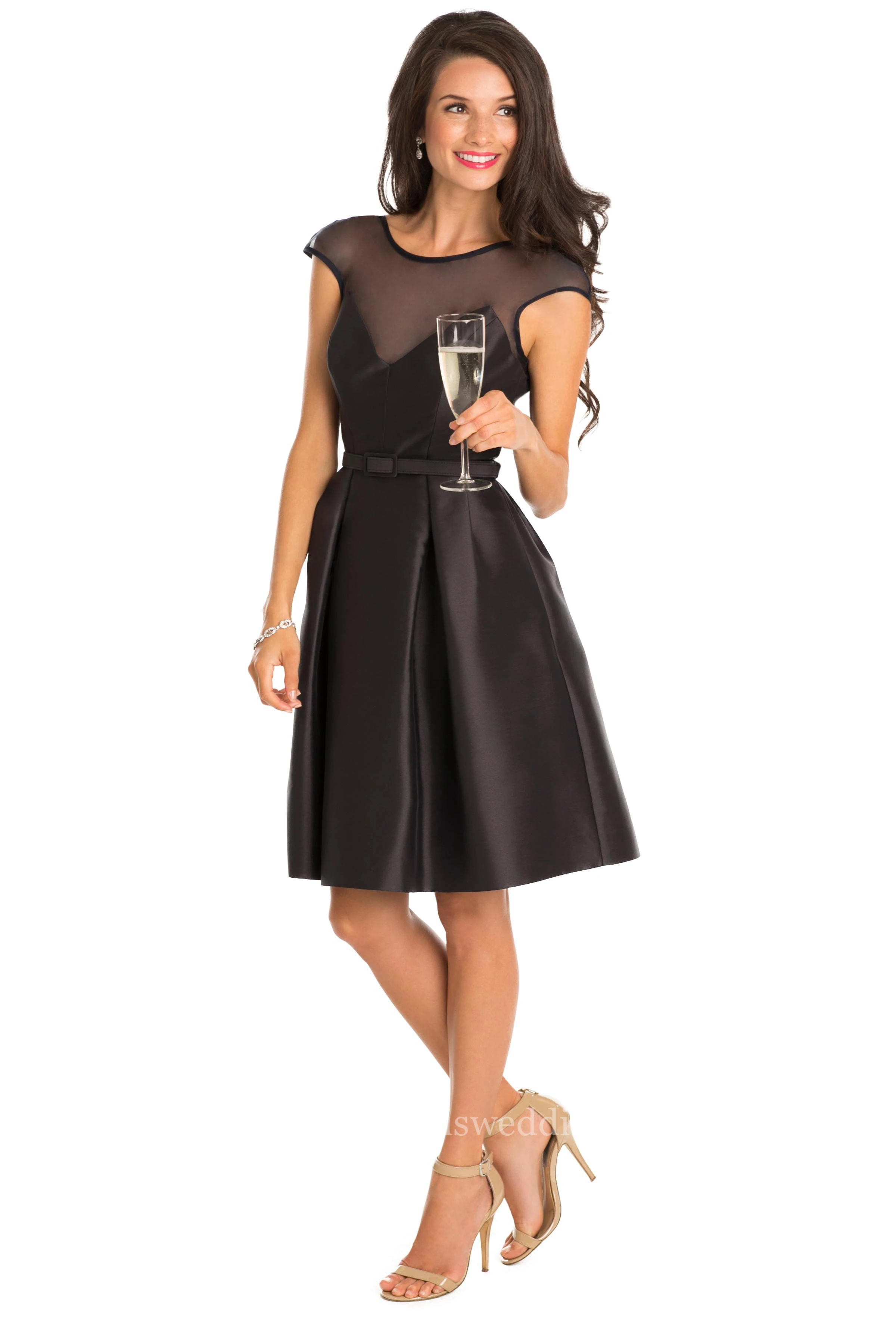 Mini A-Line Ribboned Cap Sleeve Scoop Neck Satin Muti-Color Convertible Bridesmaid Dress