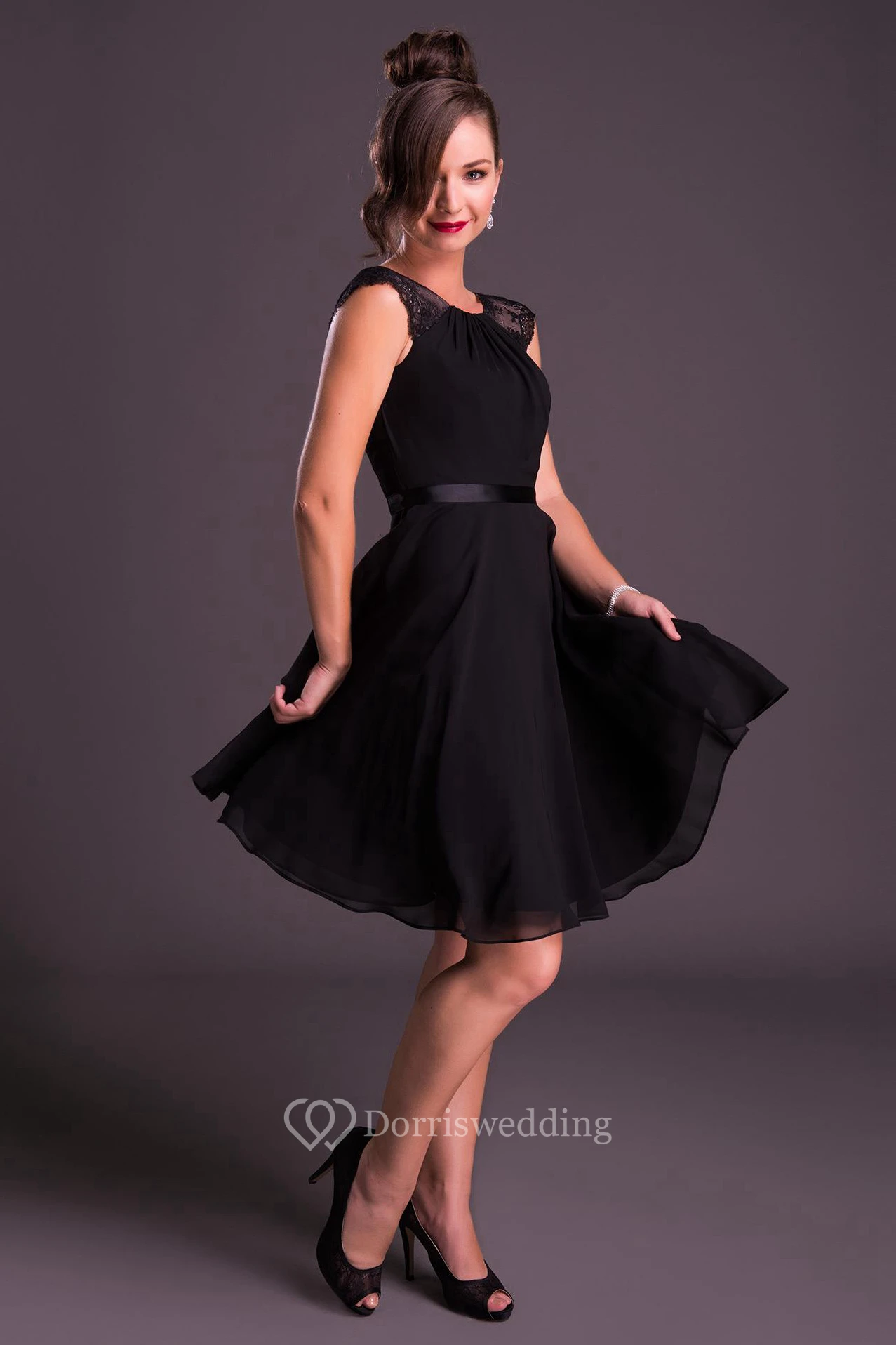 Mini Cap Sleeve Beaded Scoop Neck Chiffon Bridesmaid Dress With Ribbon