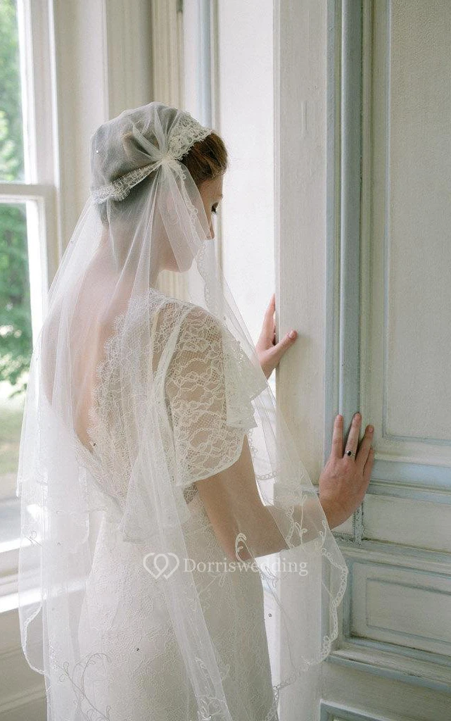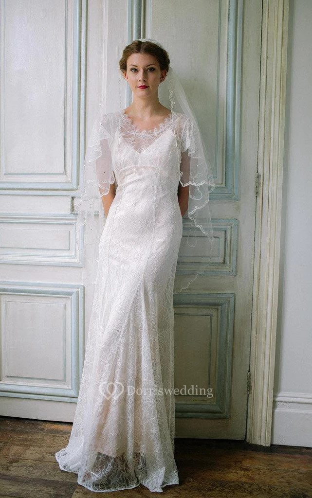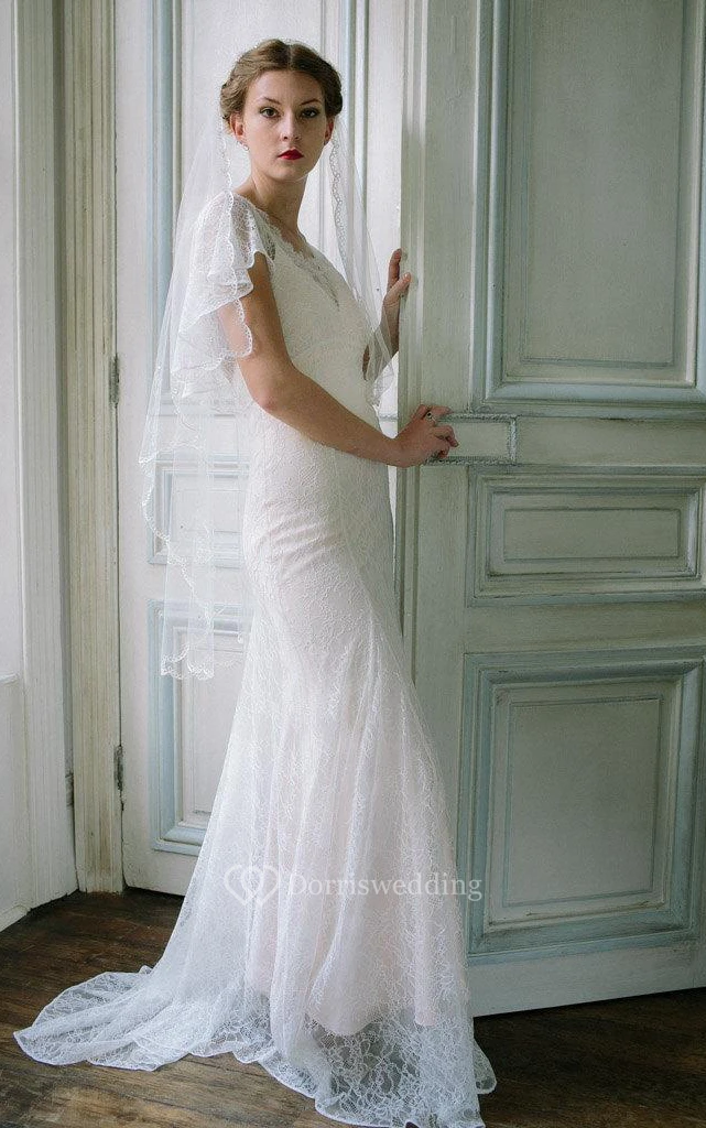 • Hemline/Train: Floor-length, Sweep/Brush Train
