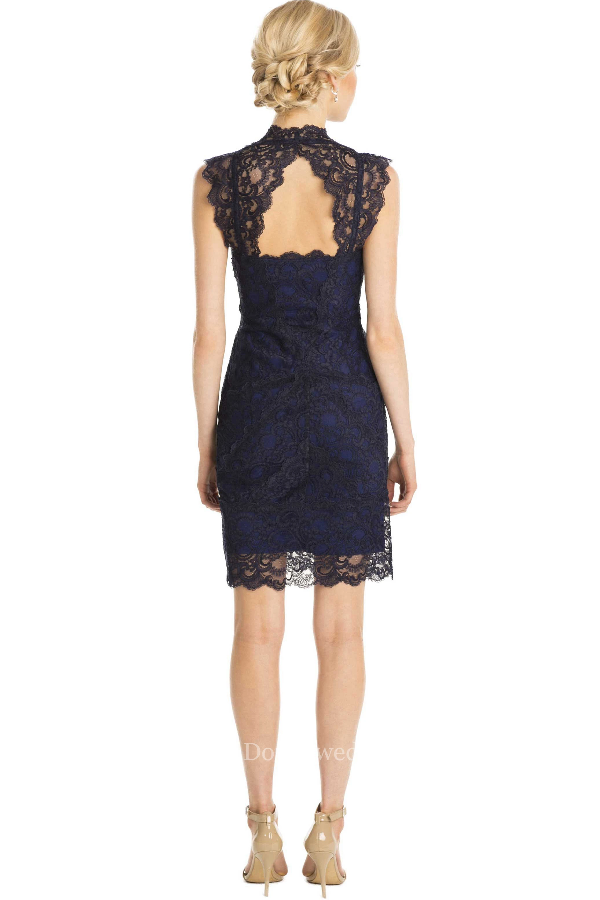 Mini Queen Anne Cap Sleeve Lace Muti-Color Convertible Bridesmaid Dress With Keyhole