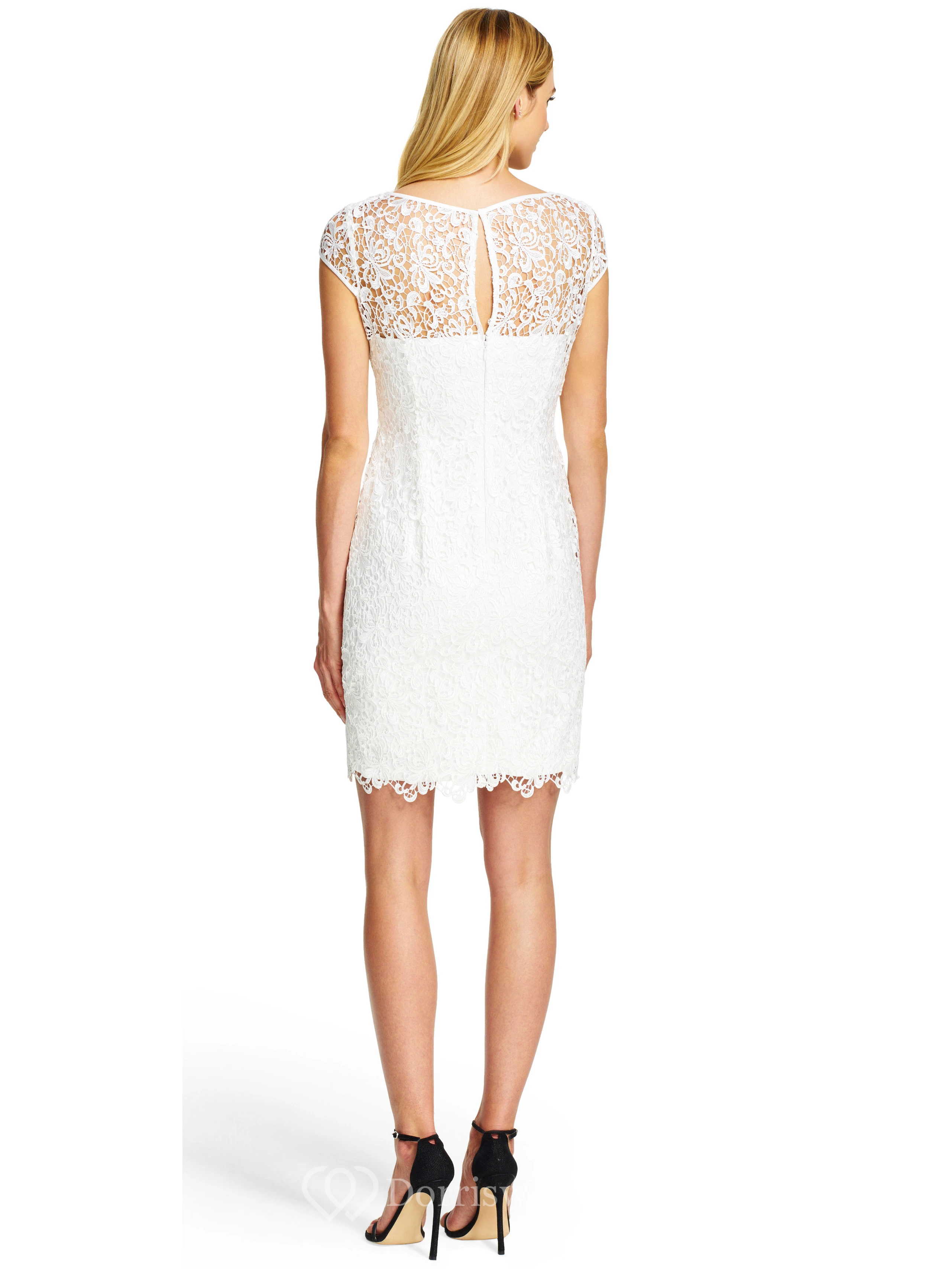 Mini Sheath Short Sleeve Bateau Neck Lace Bridesmaid Dress With Keyhole