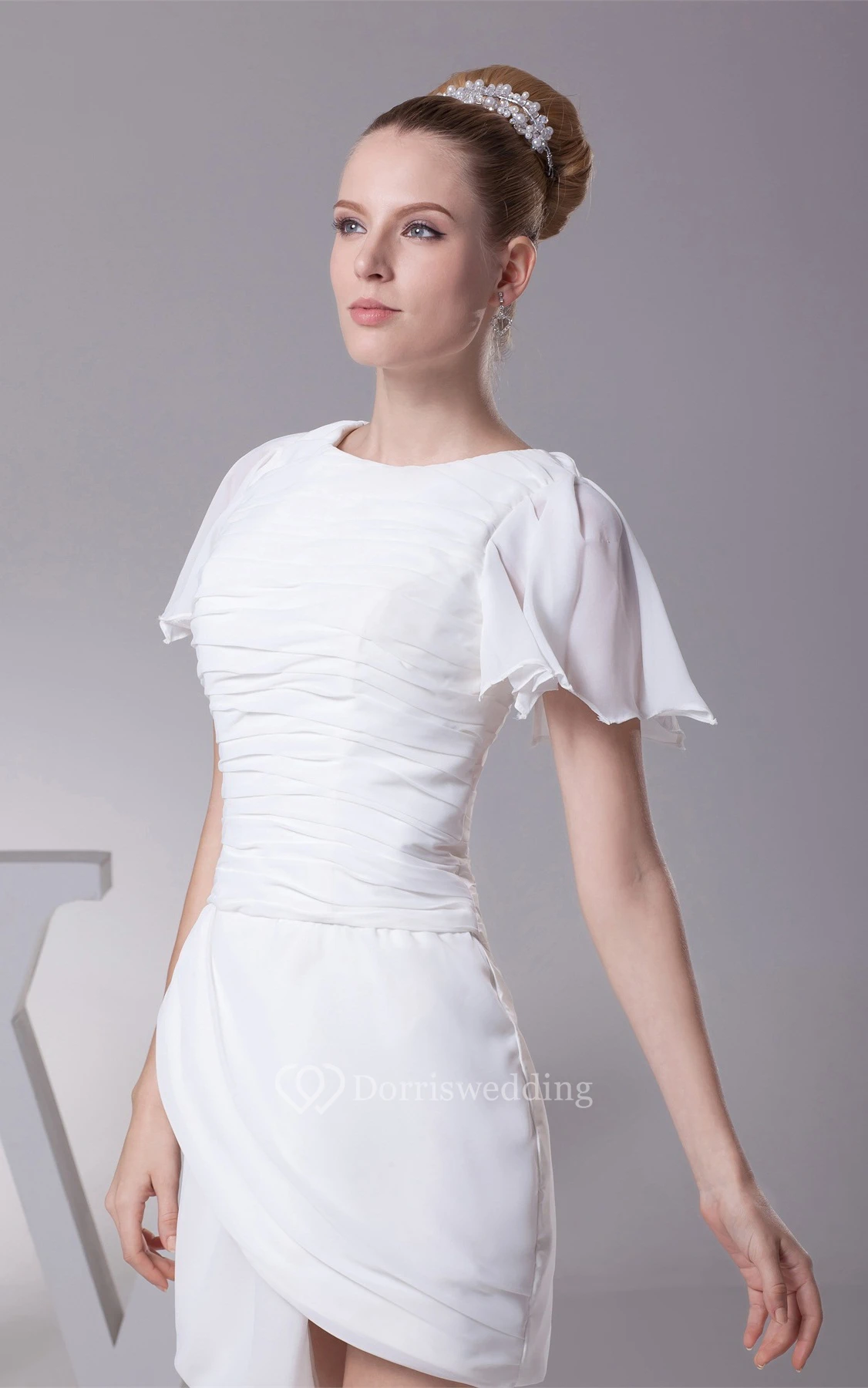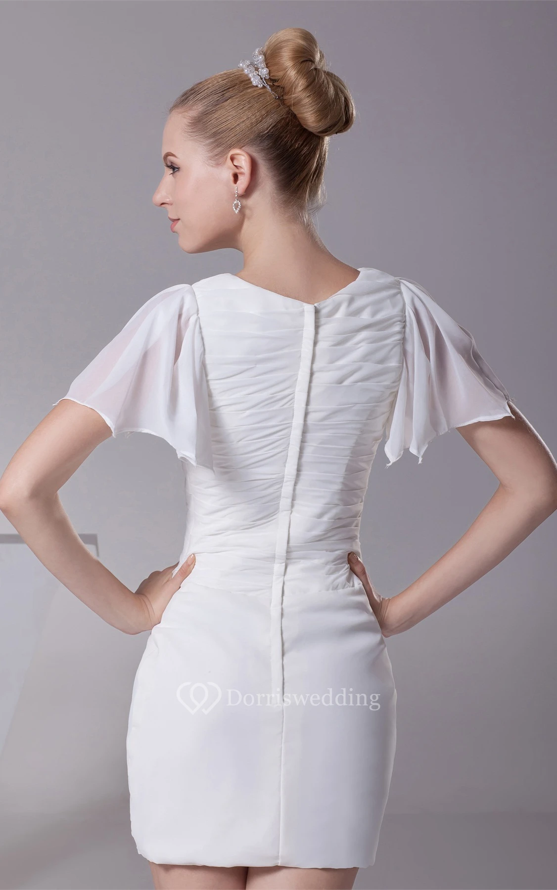 Mini-Sleeve Pencil Short Chiffon Dress With Ruched Top