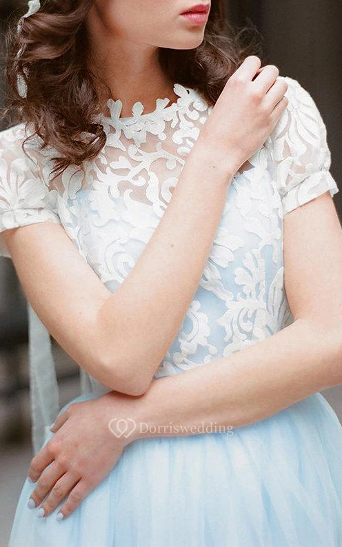Mini Tulle&Lace&Satin Dress With Button