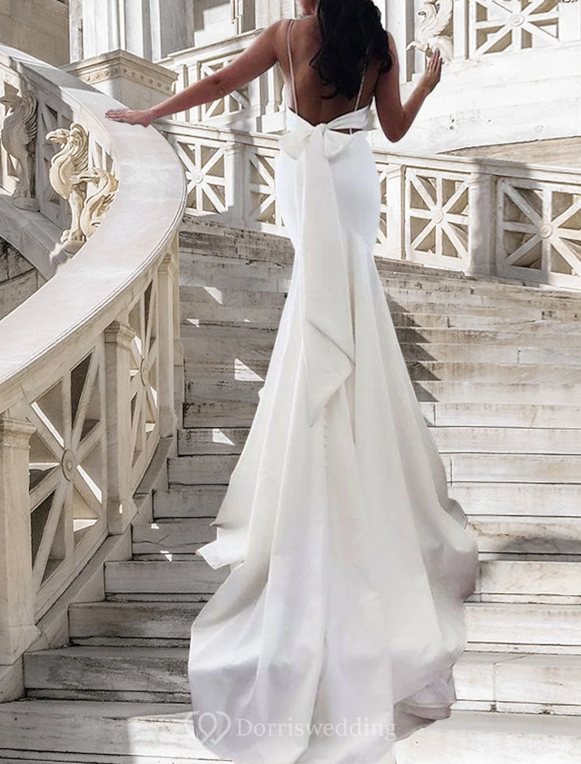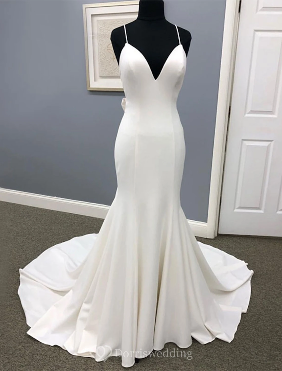Minimalist Satin Mermaid Wedding Dress with Spaghetti Straps