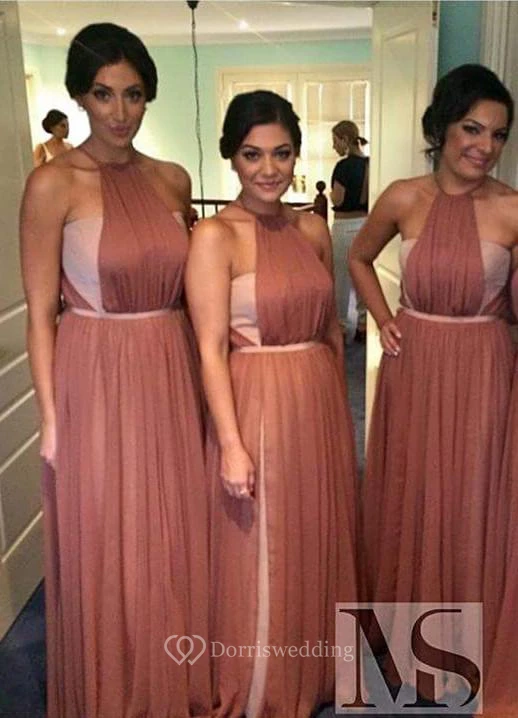 Modern A-line Halter Chiffon Bridesmaid Dress Sleeveless Floor-length