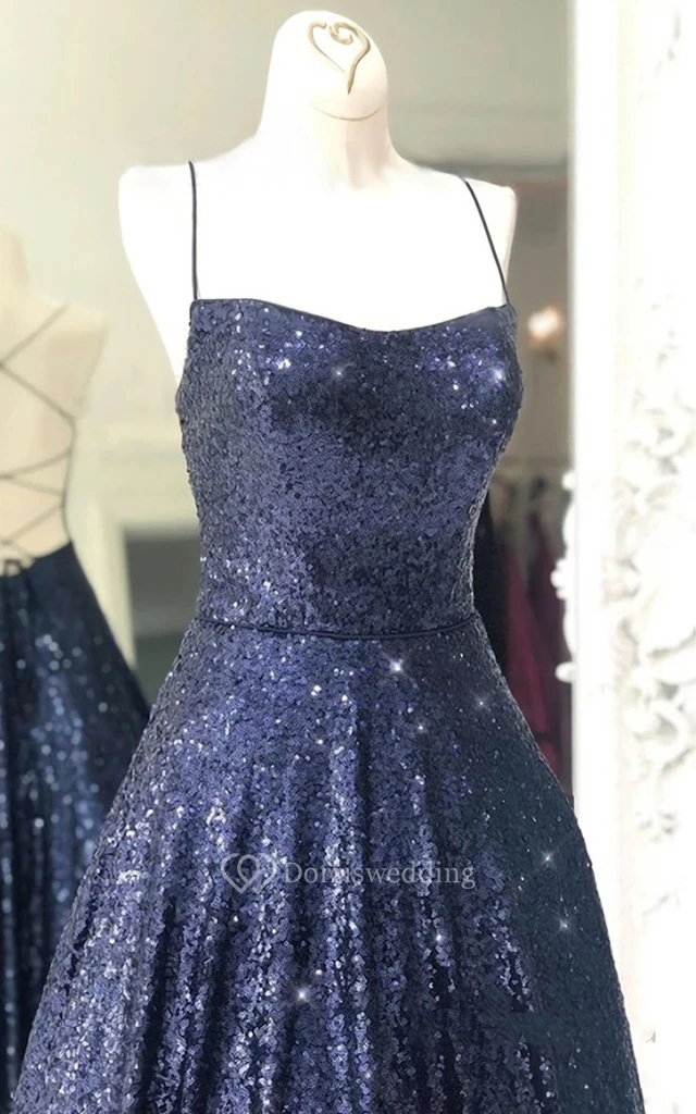 Modern A Line Sequins Floor-length Sleeveless Open Back Prom Dress