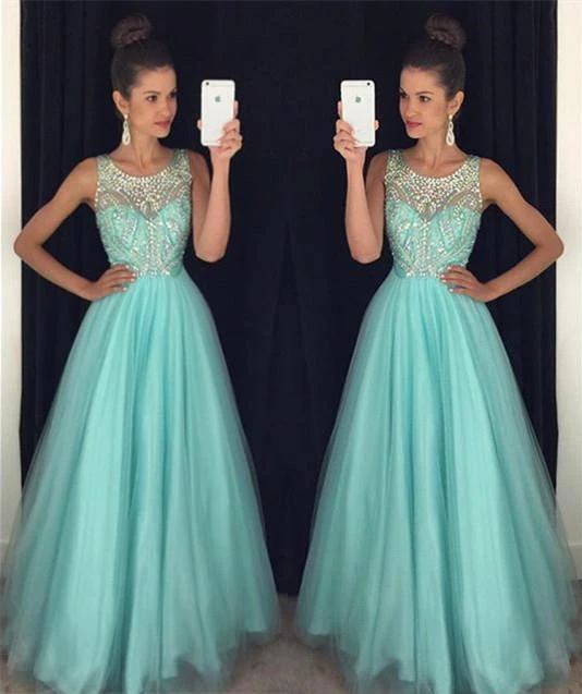 Modern Beadings A-line Illusion Evening Dress Tulle Floor-length Sleeveless