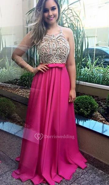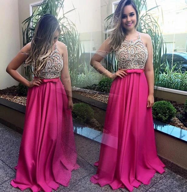 Modern Beadings Fuchsia Chiffon Prom Dress Sleevelss A-line