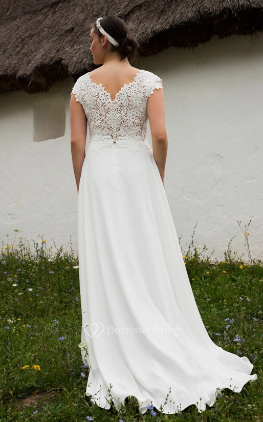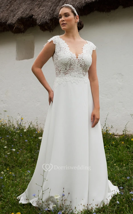 Modern Chiffon Floor-length Train Sleeveless A Line Button Wedding Dress