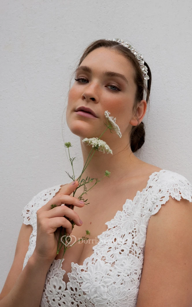 • Hemline/Train: Floor-length, Sweep/Brush Train