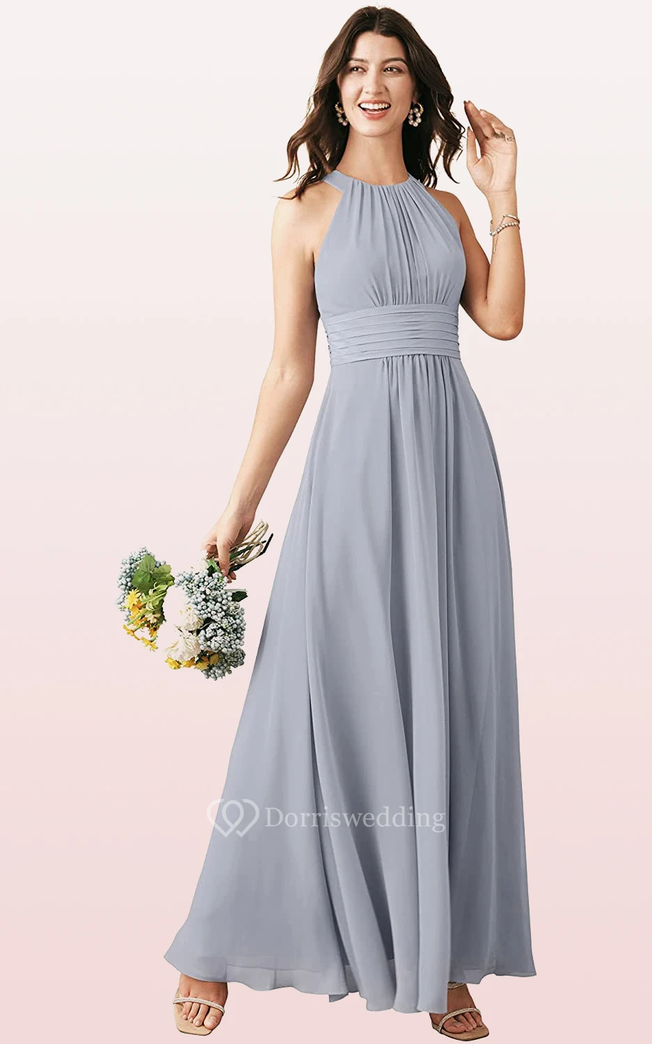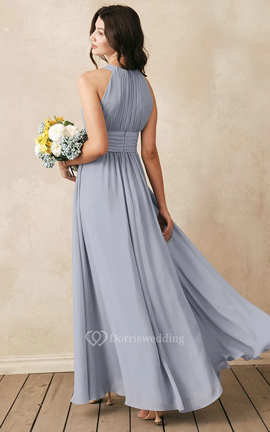 Modern Halter A Line Sleeveless Ankle-length Chiffon Bridesmaid Dress With Ruching