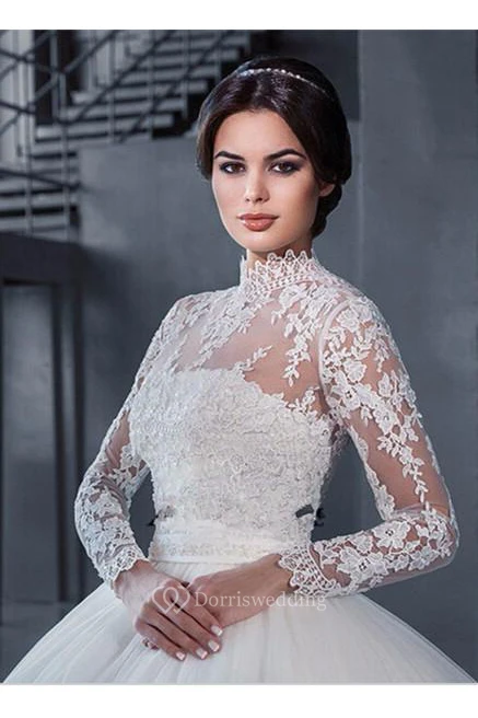 Modern High Neck Lace Appliques Wedding Dress Ball Gown Long Sleeve