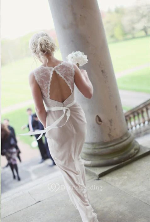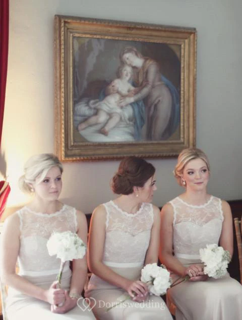 Modern Illusion A-line Lace Champagne Bridesmaid Dress Zipper Bowknot